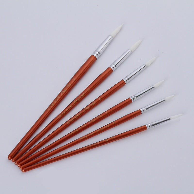12Pcs Lot Round Shape Nylon Hair Wooden Handle Paint Brush Set Tool For Art School Watercolor Acrylic Painting