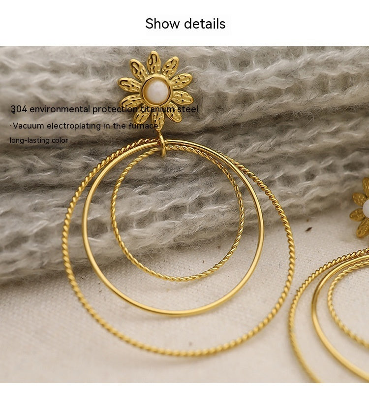 18K Gold Titanium Steel Multi-layer Circle Flower Earrings