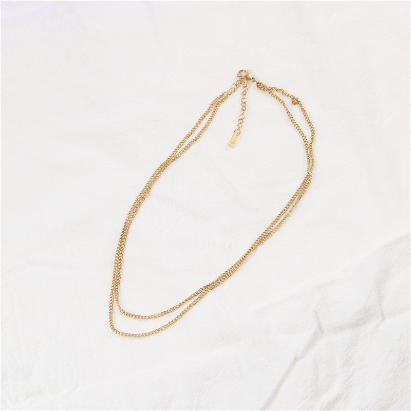18k Plated Double-layer Flat Curb Necklace Gold Necklace