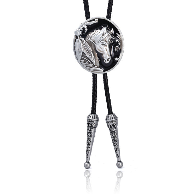 Punk Genuine Leather Polo Bow Tie Retro Horse Zinc Alloy Leather Necklace