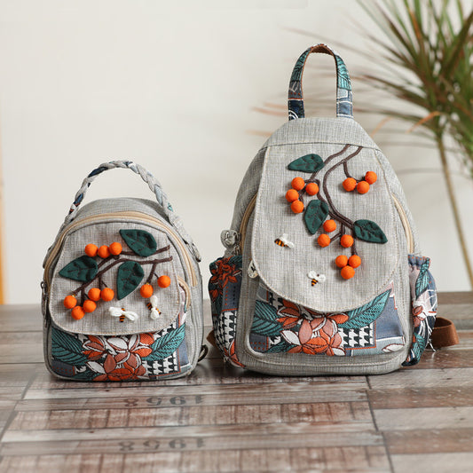Canvas Lightweight Casual Backpack With Three-dimensional Hand Woven Persimmon Ruyi Lightweight Backpack