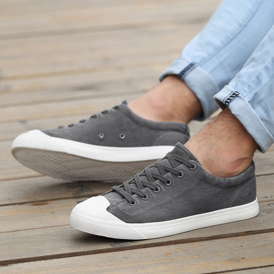 Low-top Lace-up Flat Four Seasons Solid Color Men's Canvas Shoes