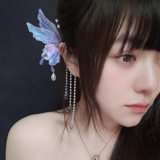 Butterfly Gradient Color Pearl Glaze Tassel Earrings
