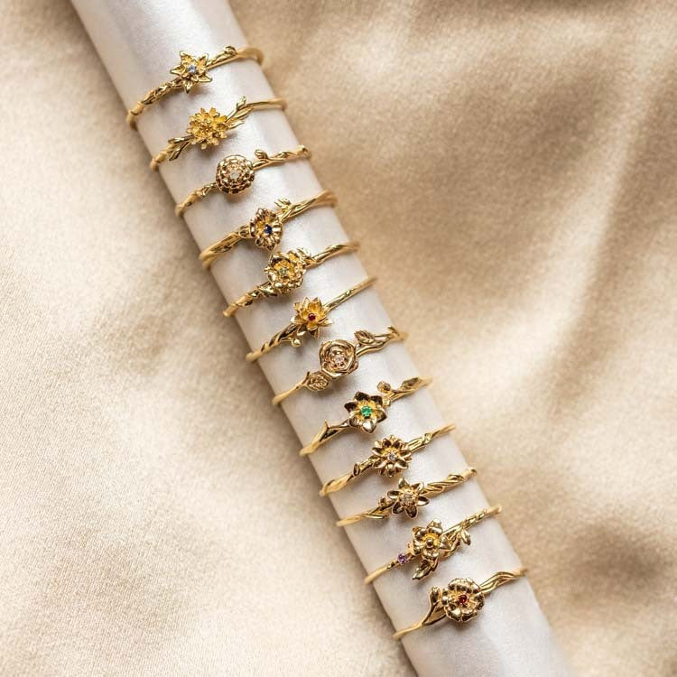 12yue Flower Birthstone Ring Copper Inlaid Zircon