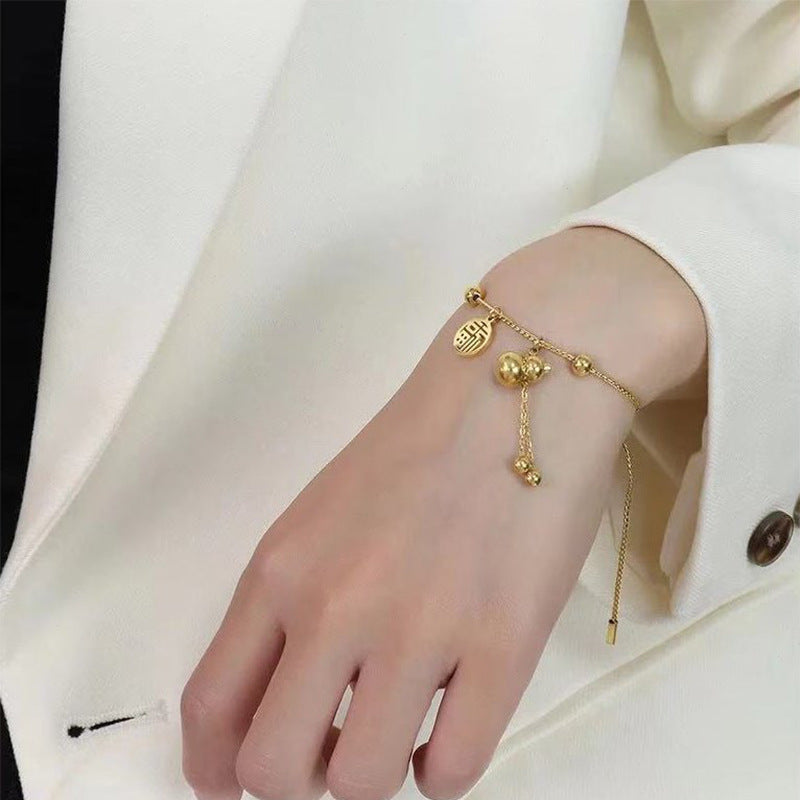 18K Gold Design Sense Jewelry Blessed Gourd Pull Bracelet