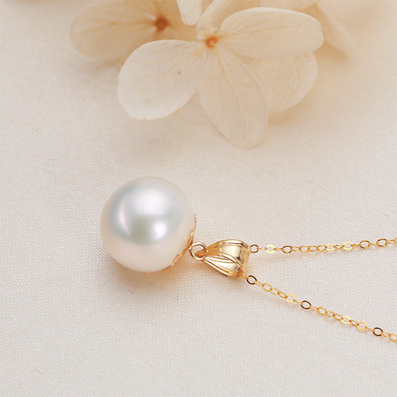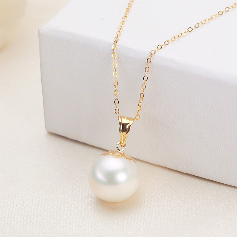 Color: 11mm white round Edison Pearl 18K gold flower cap Oval buckle gift S925 silver necklace