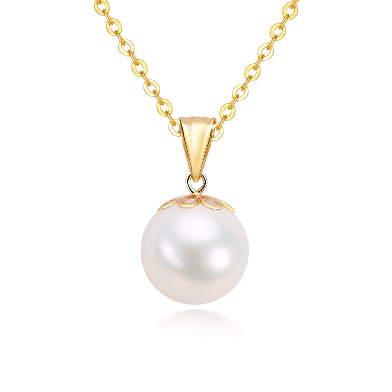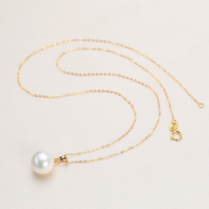 18K Gold Oval Buckle Pendant White Pearl Necklace