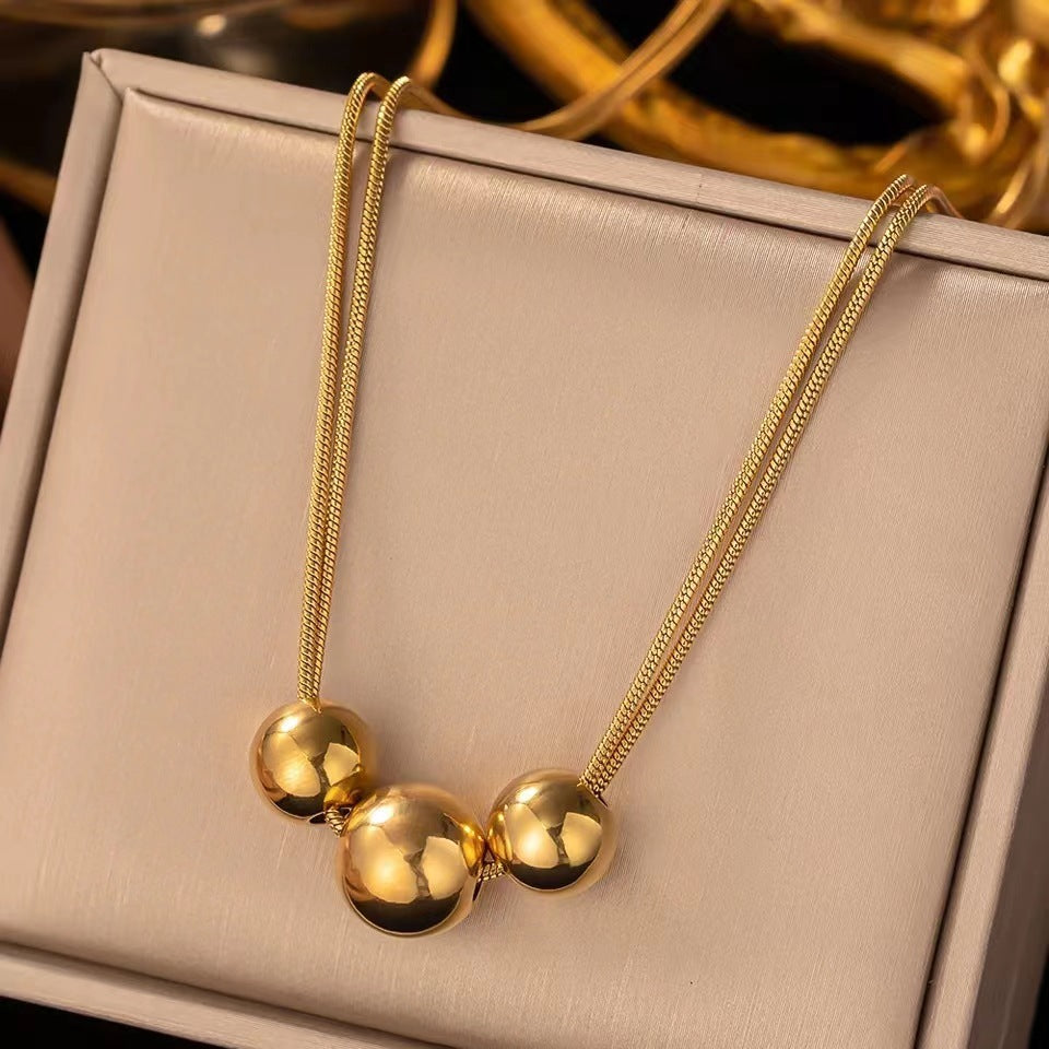 18K Gold Titanium Steel Metal Ball Necklace Vintage