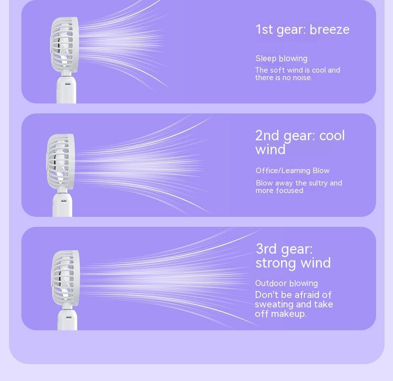 4. Mini design, easy to carry, can be carried anywhere, can be put into your bag. Perfect mini fan for office, home, dormitory, study, library, game room, or outdoor.