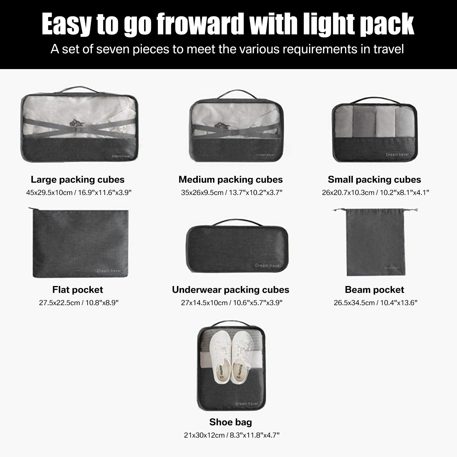 7pcs Packing Cubes Luggage Storage Organiser Travel Compression Suitcase Bags