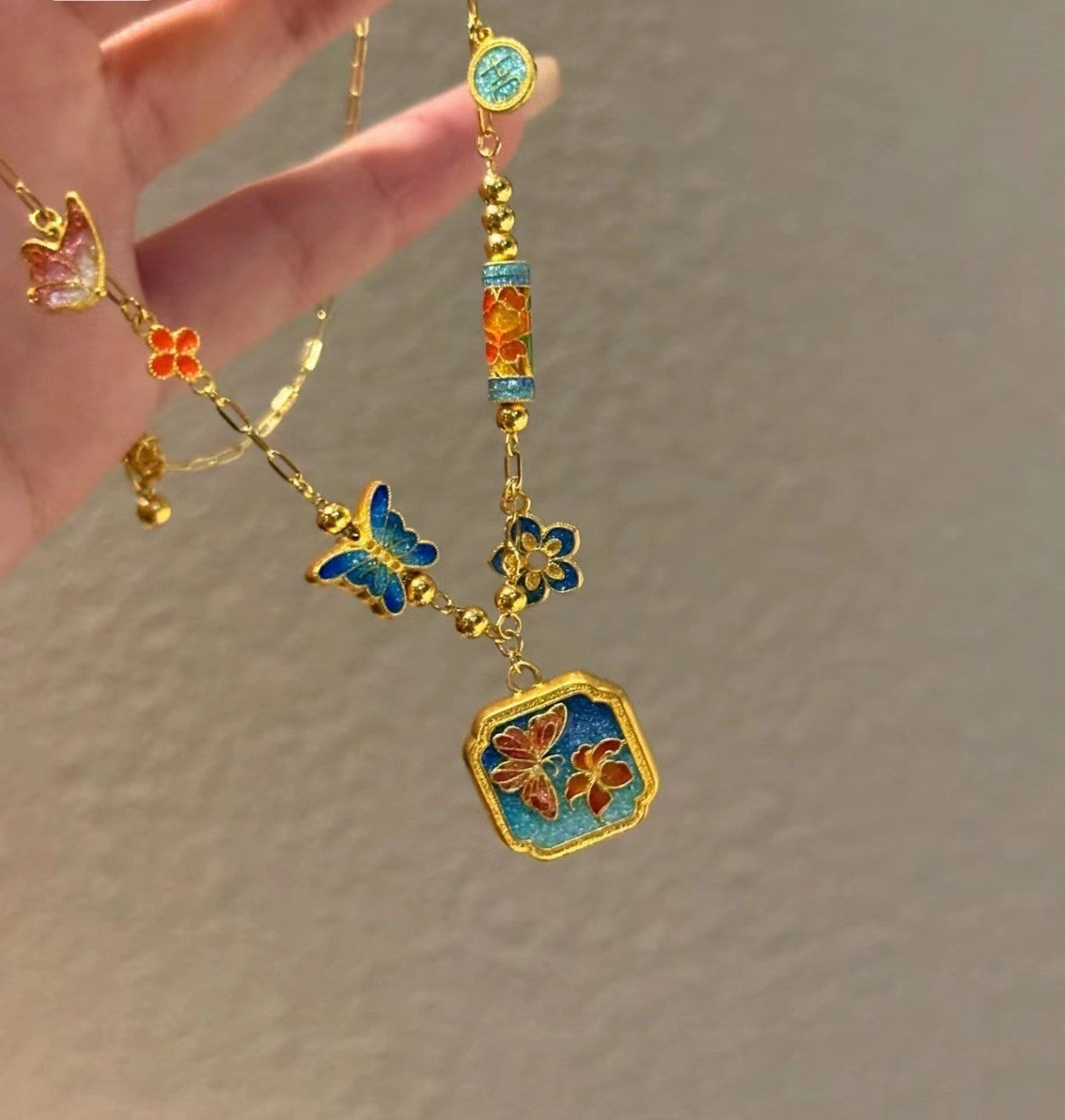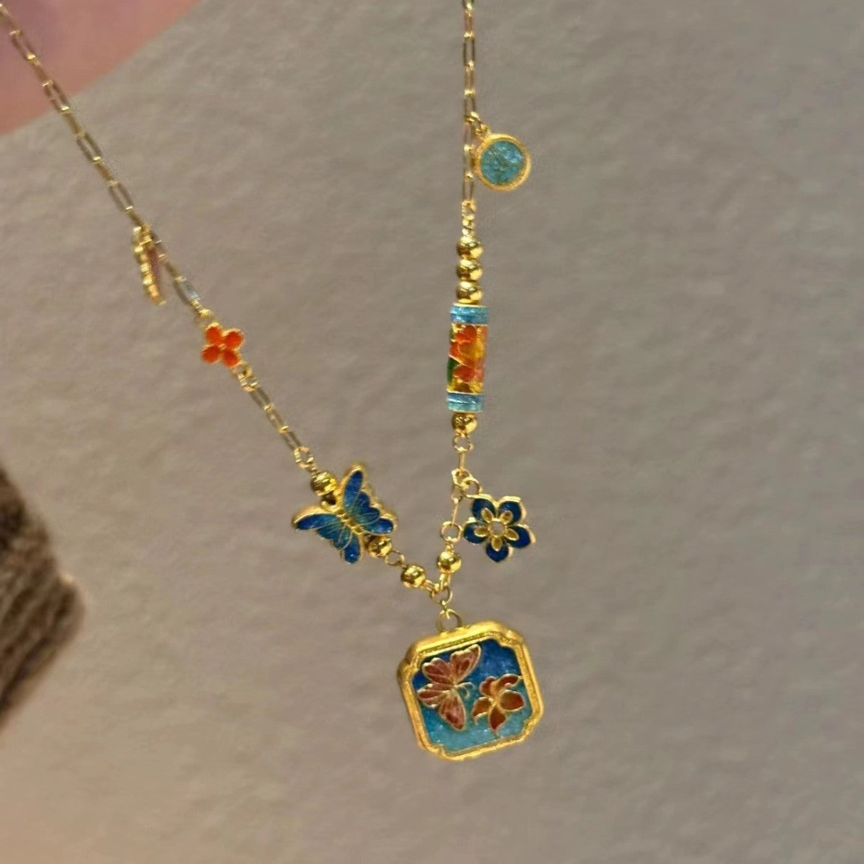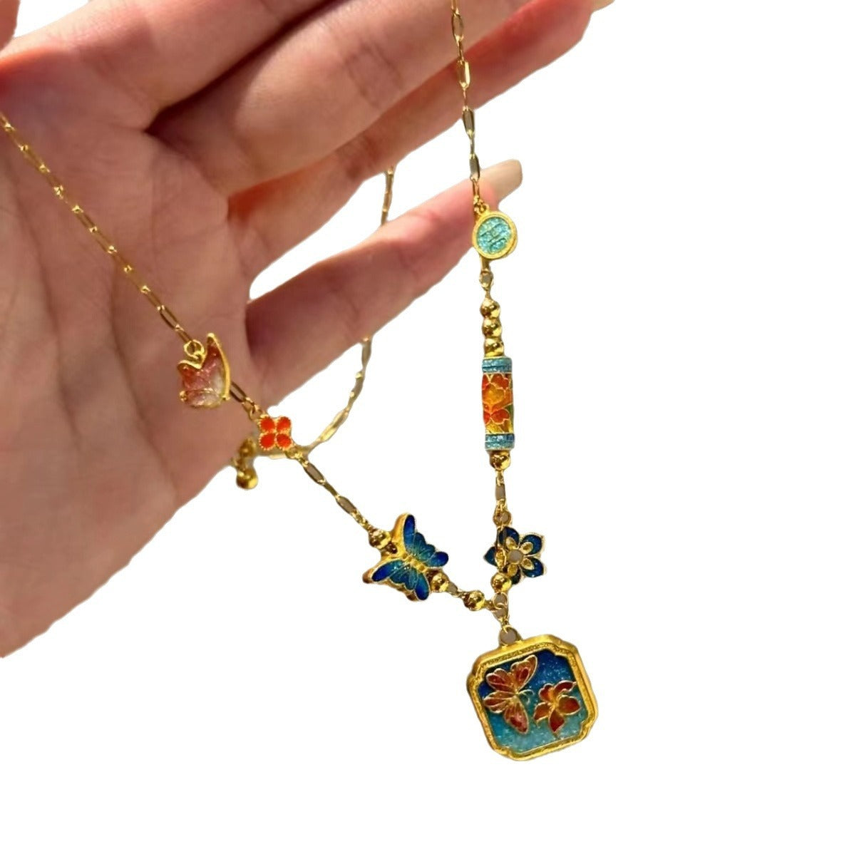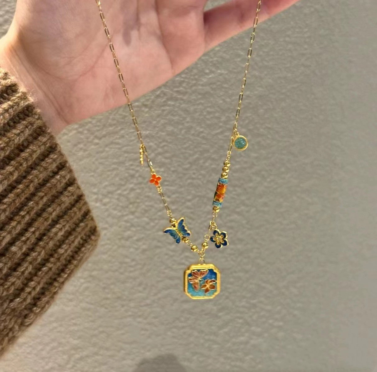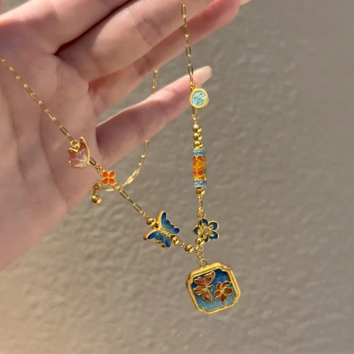 Color: sky blue butterfly pendant clavicle chain