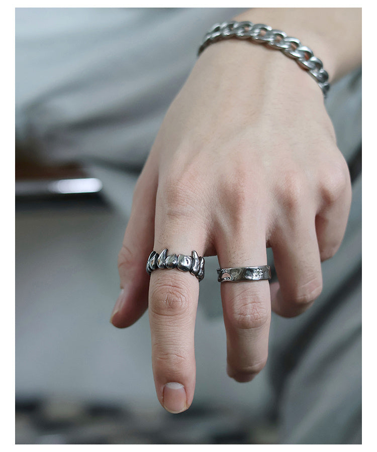 Animal Teeth Shape Closed Titanium Steel Ring For Men And Women
