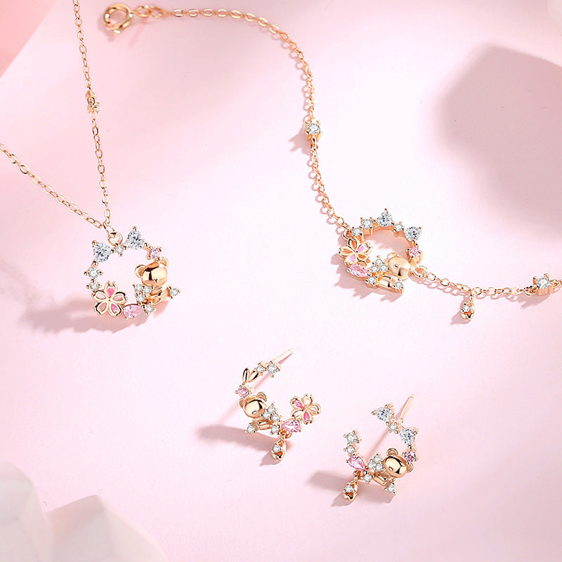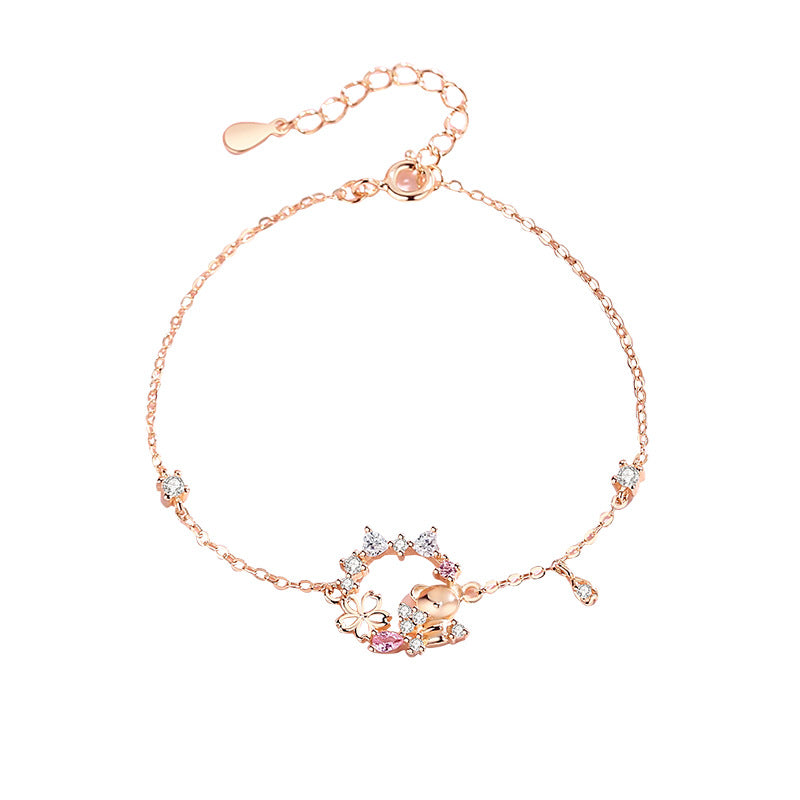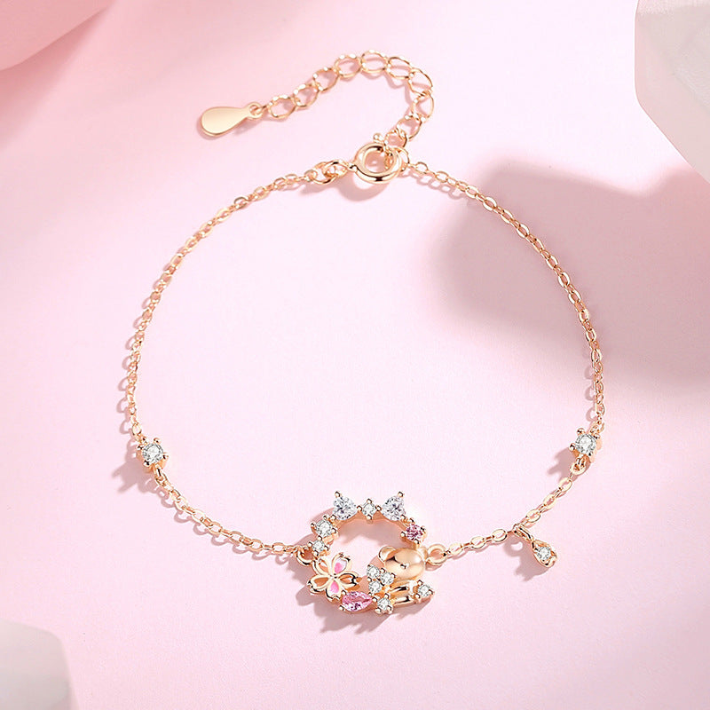 Bear Garland Pure Silver Net Red Mori Geometric Micro-inlaid Girlfriends Bracelet