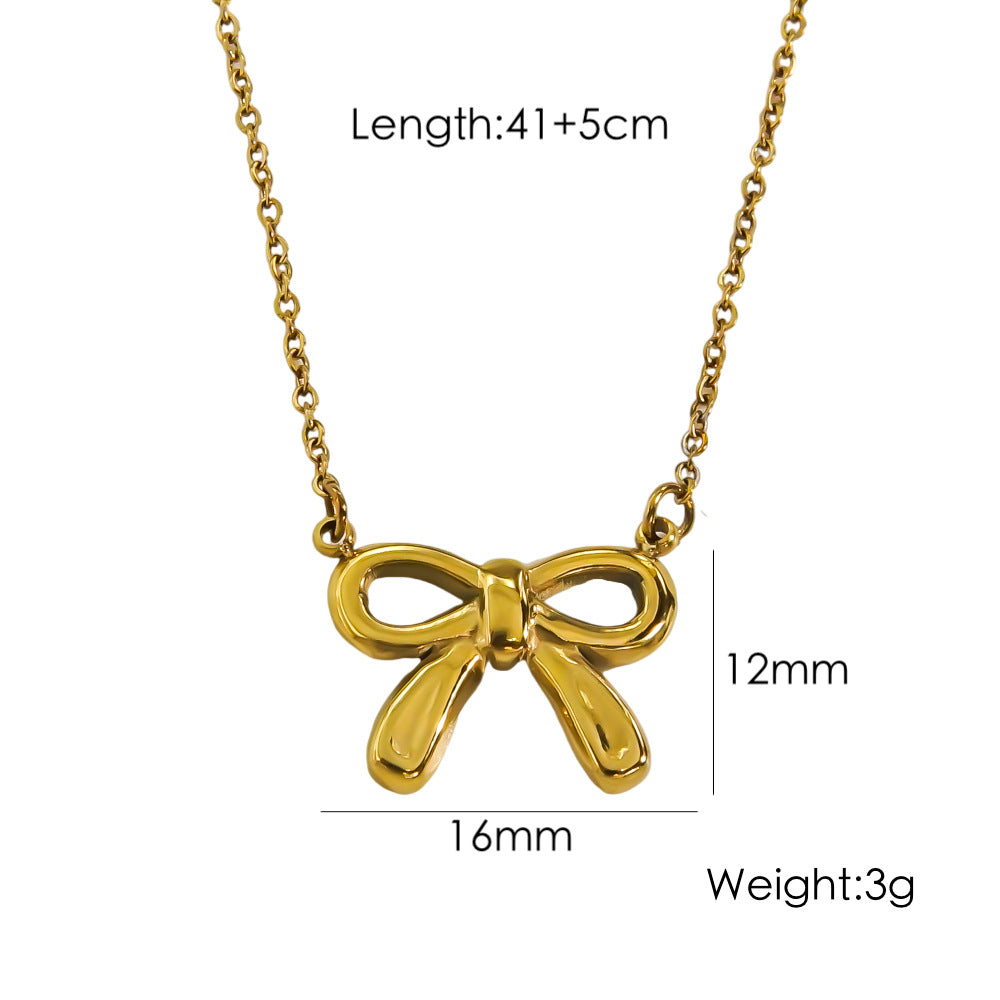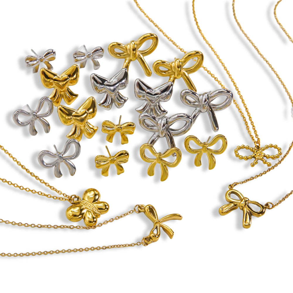 Bow Stainless Steel 14K Gold Earrings Necklace