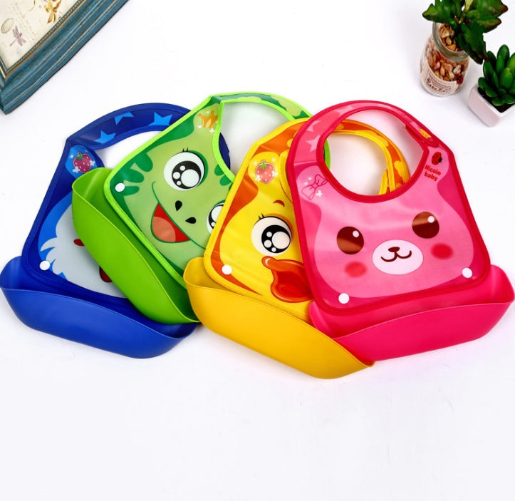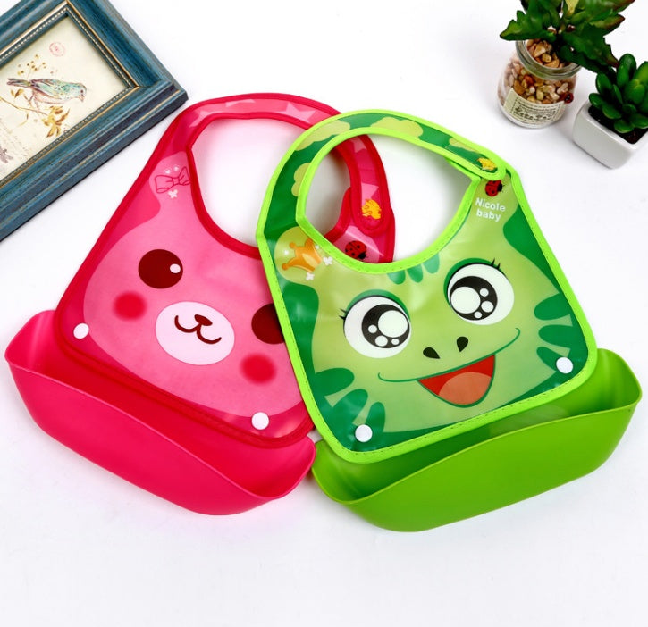 Cartoon baby PVC three-dimensional bib Increase baby bib Waterproof silicone children's dinner pocket