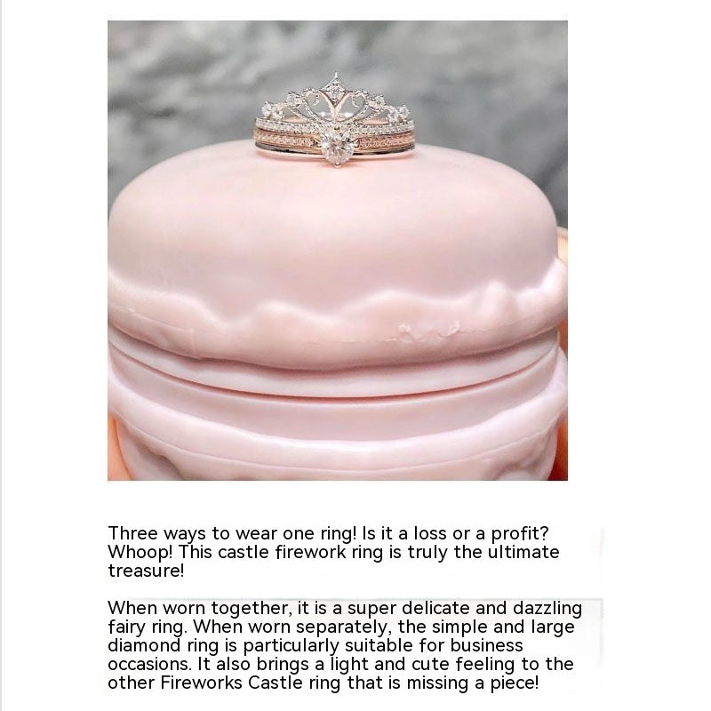 Castle Fireworks Moissanite Ring Crown White Rose Two-color Gold One Multi-wear Twin Women