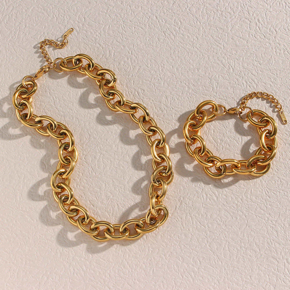 Color: N thick chain bracelet 15cm, N thick chain necklace 40cm