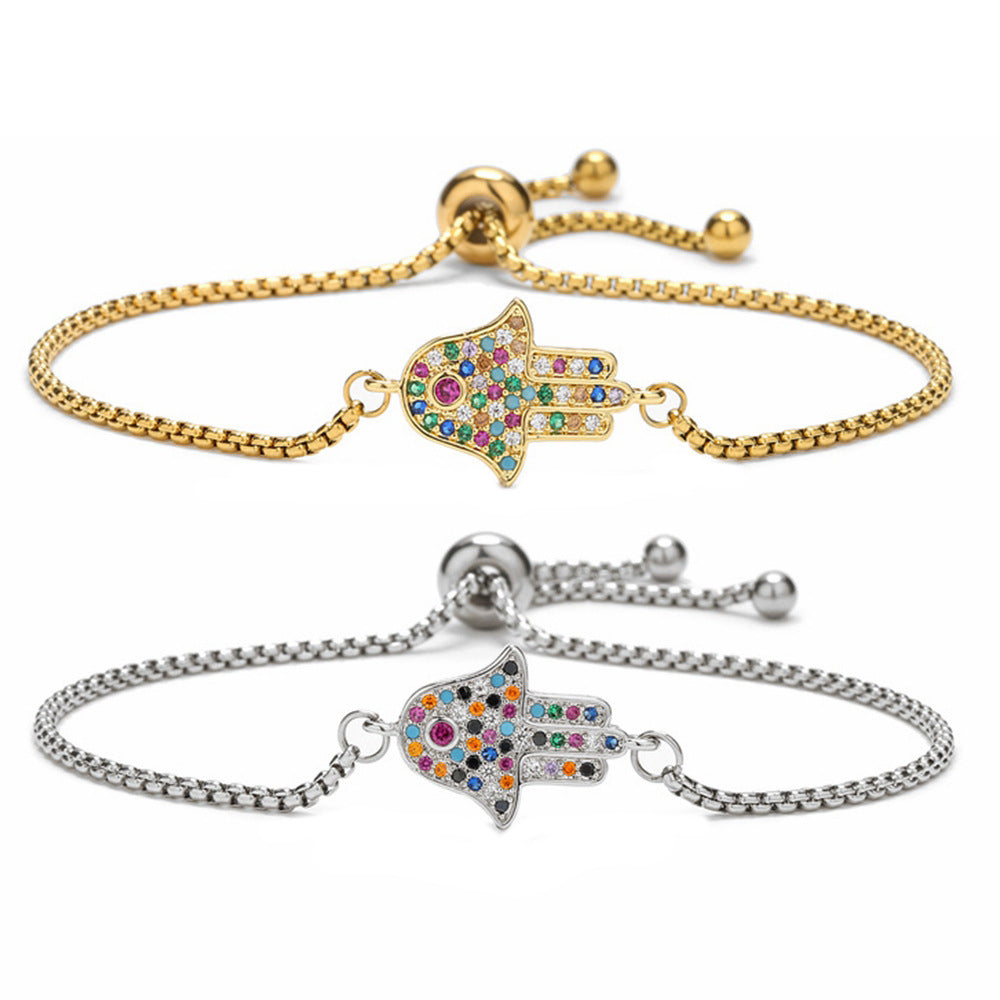 Copper Micro Inlaid Zircon Palm Adjustable Stainless Steel Bracelet Bracelet For Women