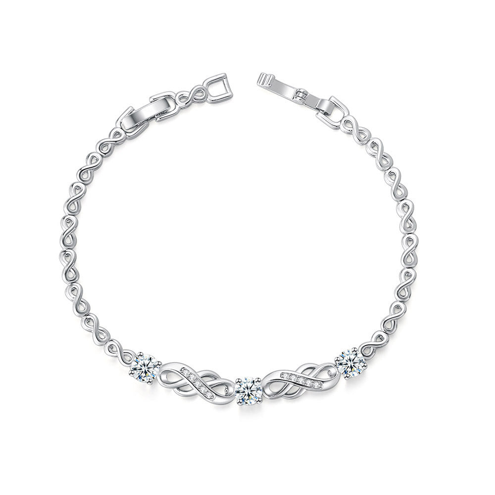 European And American Popular 8-word Inlaid Zircon White Gold Plated Infinite Bracelet