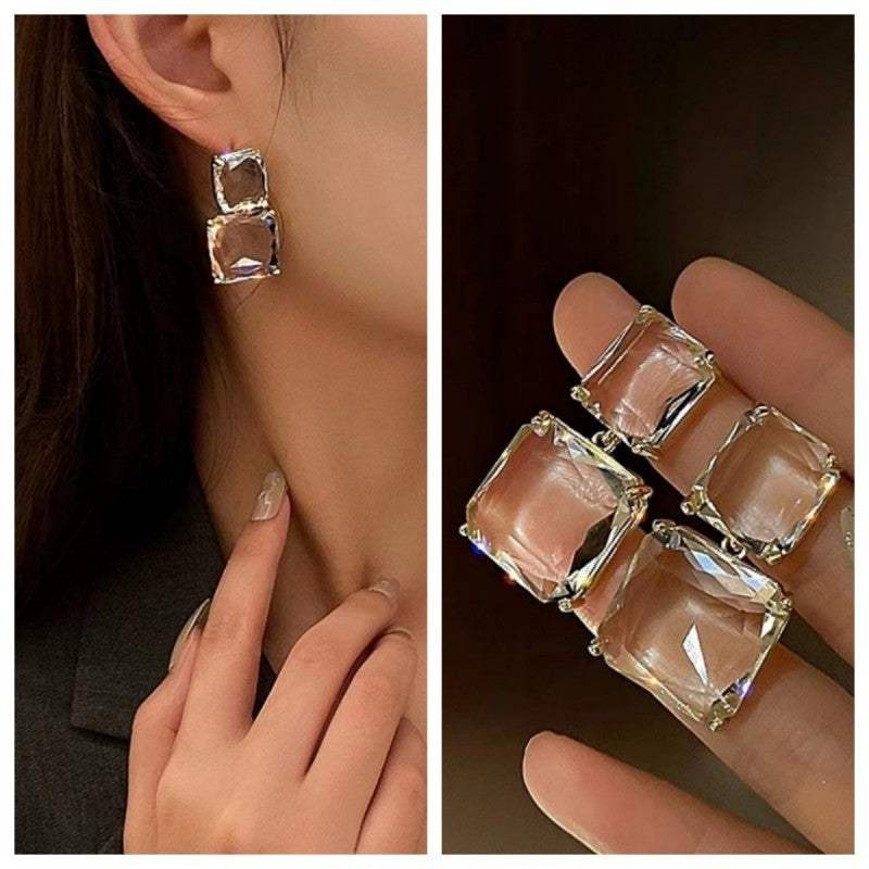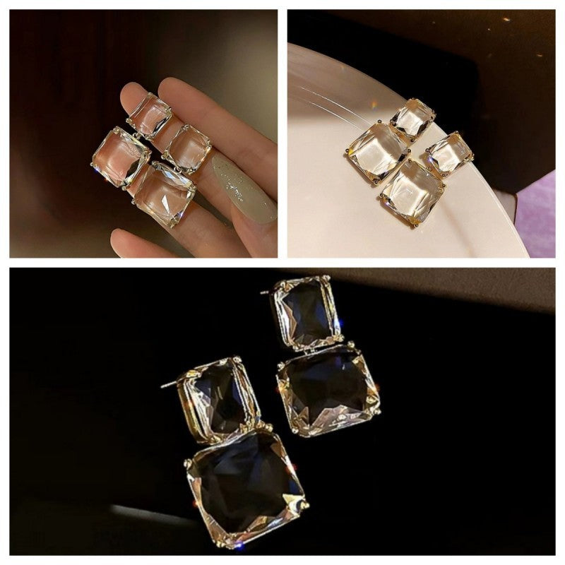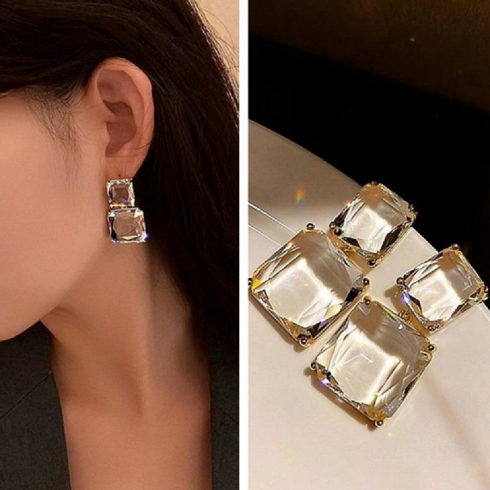 European And American Retro Geometric Square Transparent Crystal Earrings