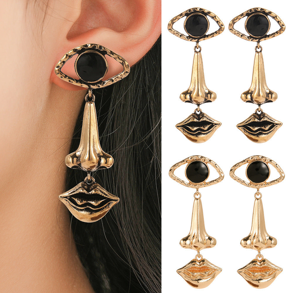 Exaggerated Long Retro Nose Lips Eye Earrings