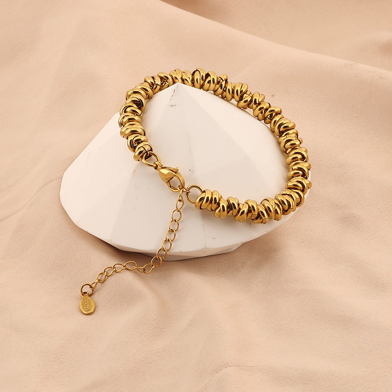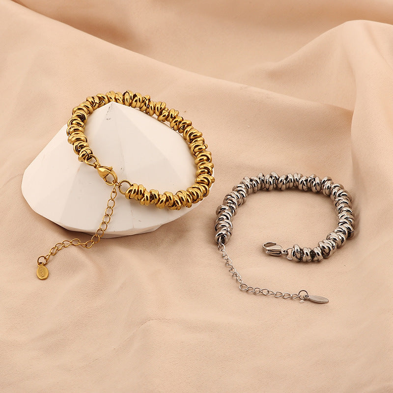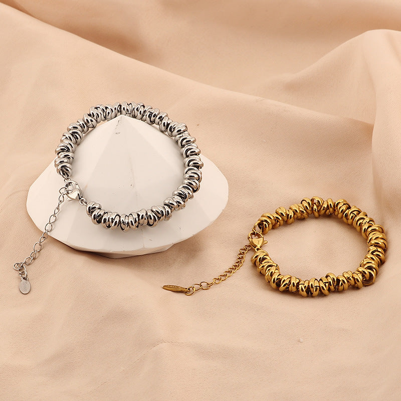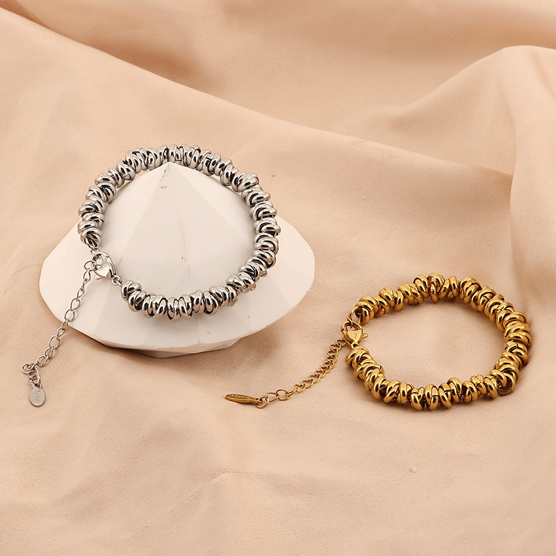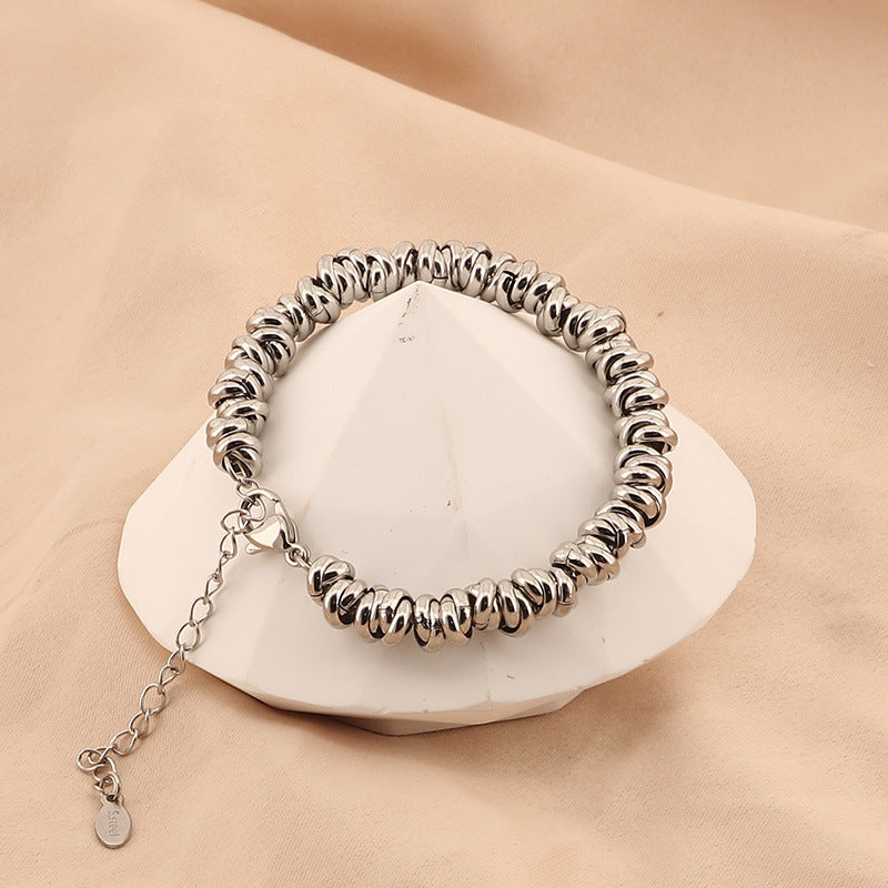 Fashion Creative Metal Circle Beaded Retro Titanium Steel Bracelet