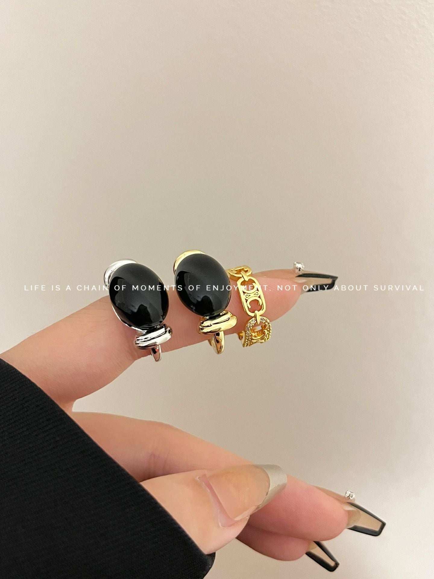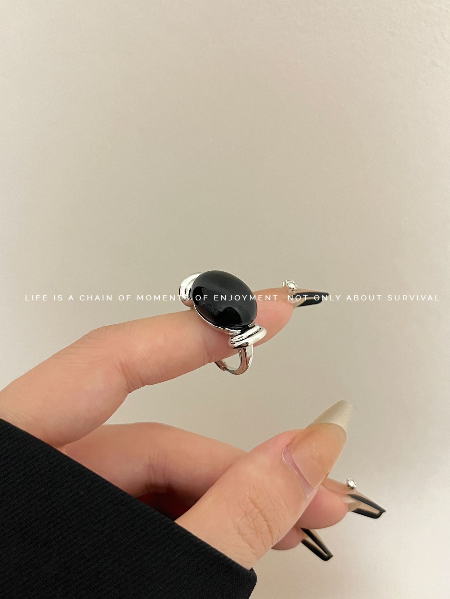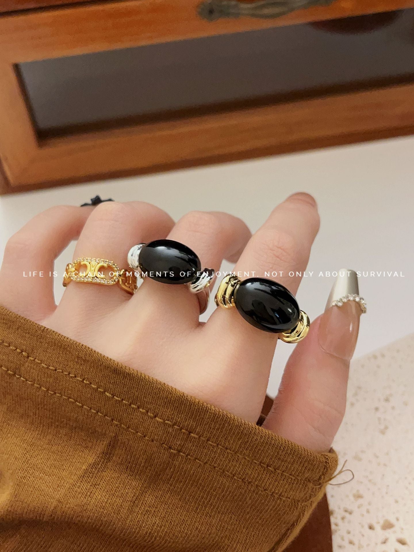 French Retro Black Agate High-grade Metal Ring Women's Light Luxury Fashionable Twin Ring