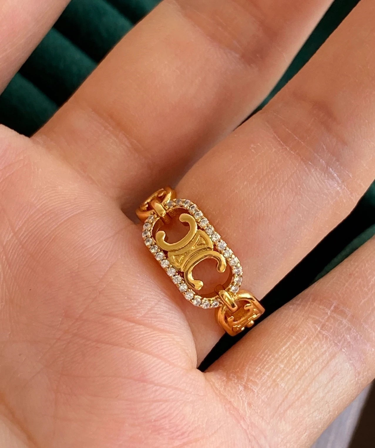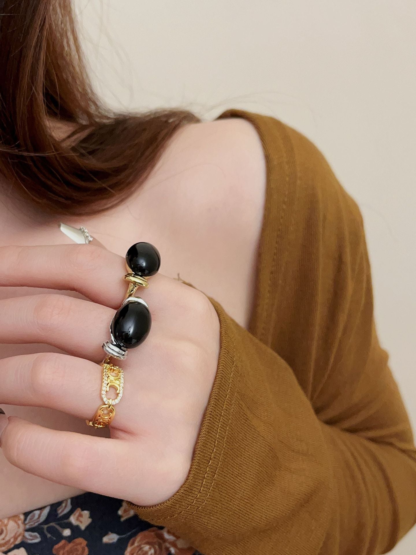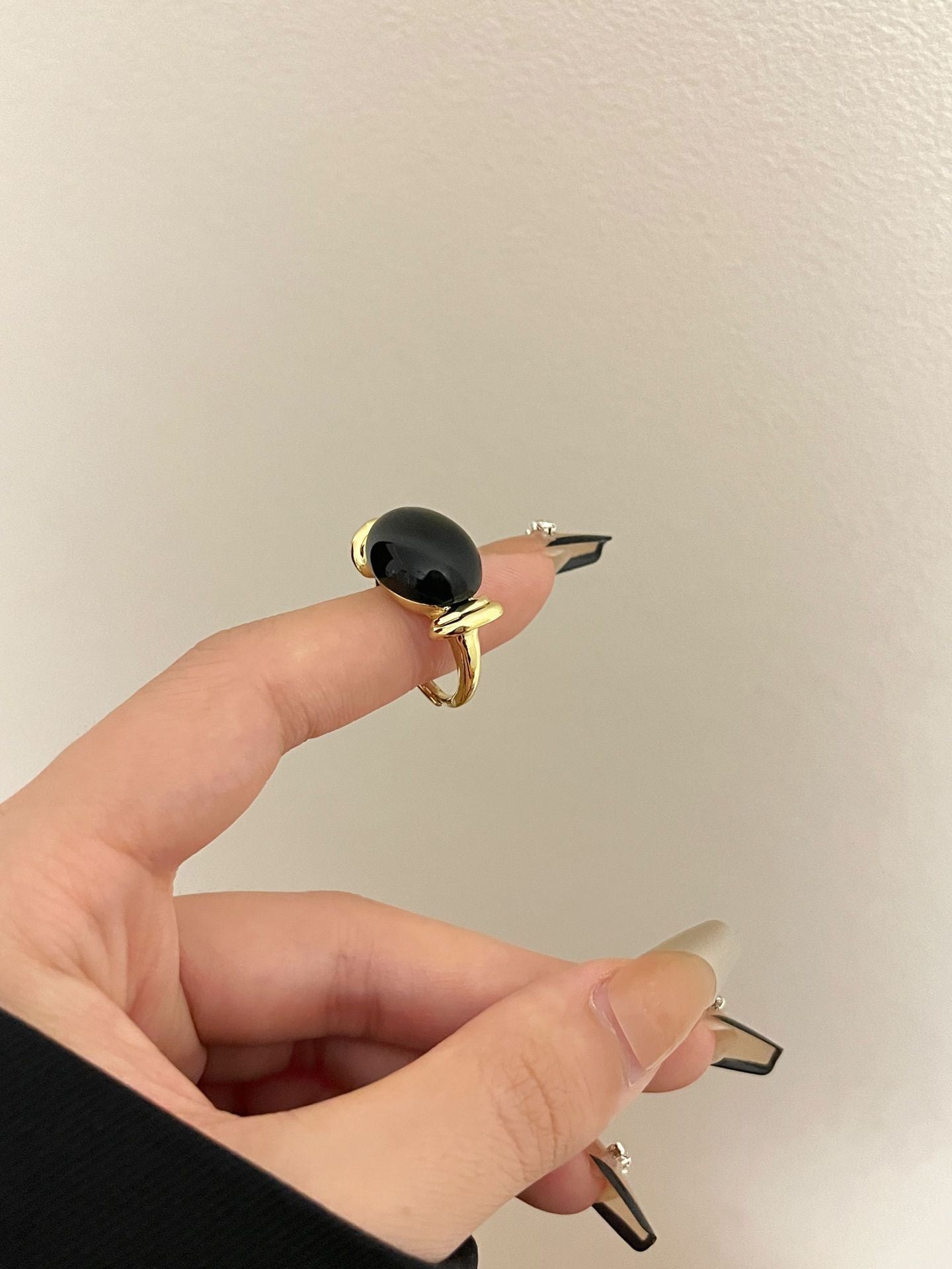 French Retro Black Agate High-grade Metal Ring Women's Light Luxury Fashionable Twin Ring