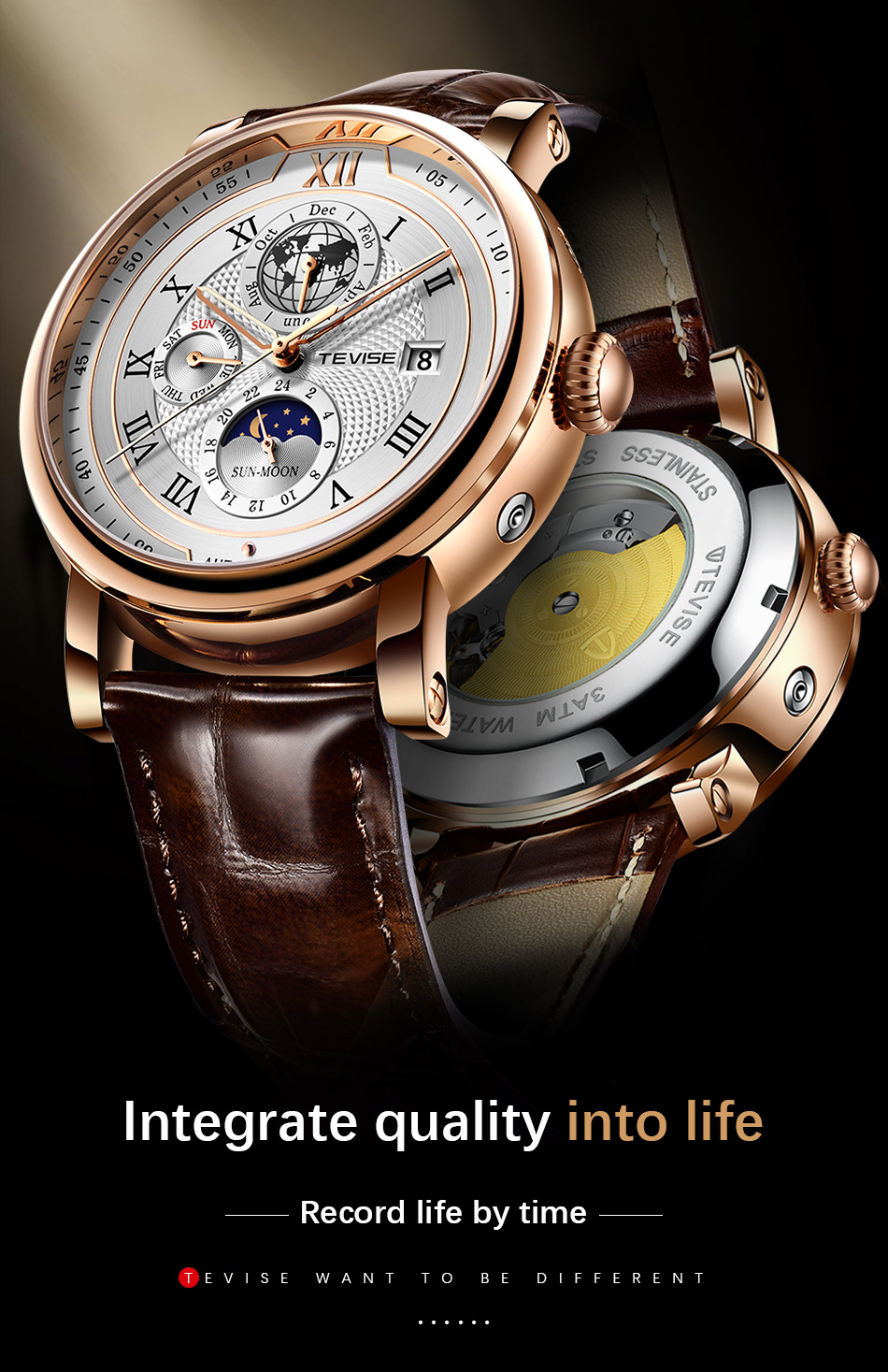 Men's Waterproof Moon Phase Automatic Mechanical Watch