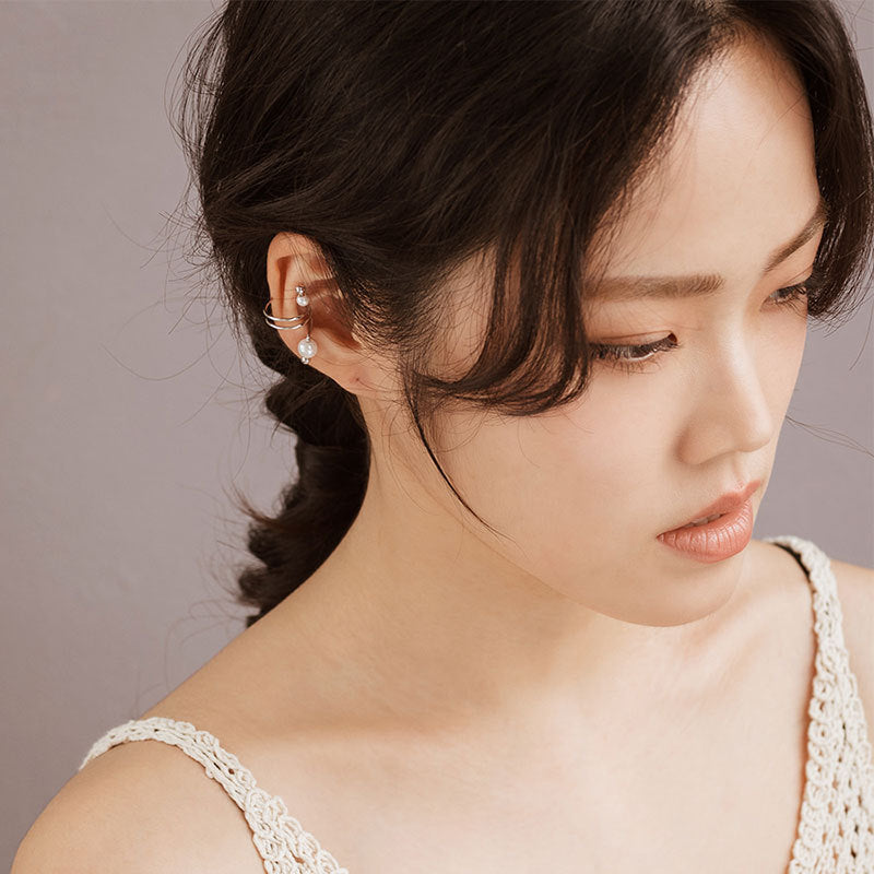 Minimalist Line Pearl Ear Bone Clip Design Pearl Earrings