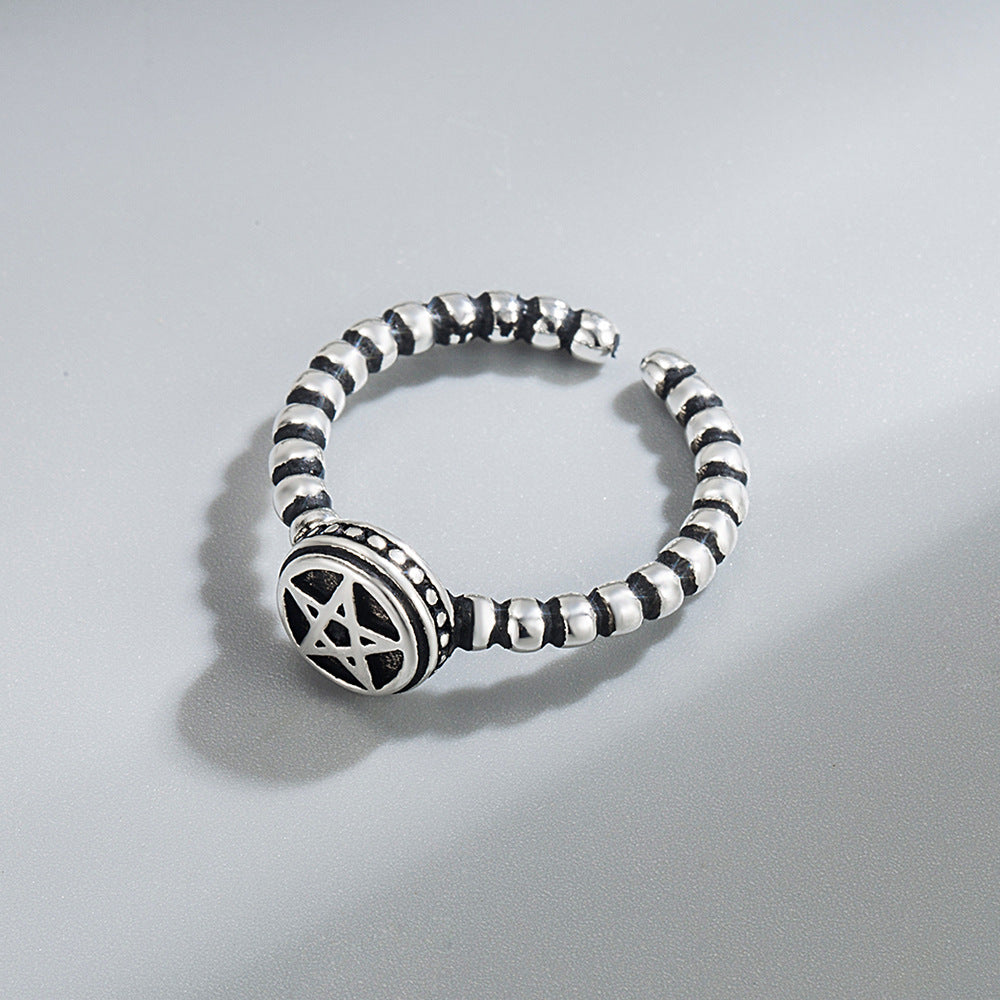 Mix And Match Retro Imitation Thai Silver Five-pointed Star Ring