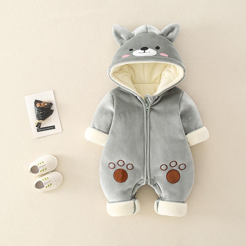 Newborn Baby Cartoon Clothes Autumn And Winter Plus Cotton Romper Climbing Clothes For Men And Women