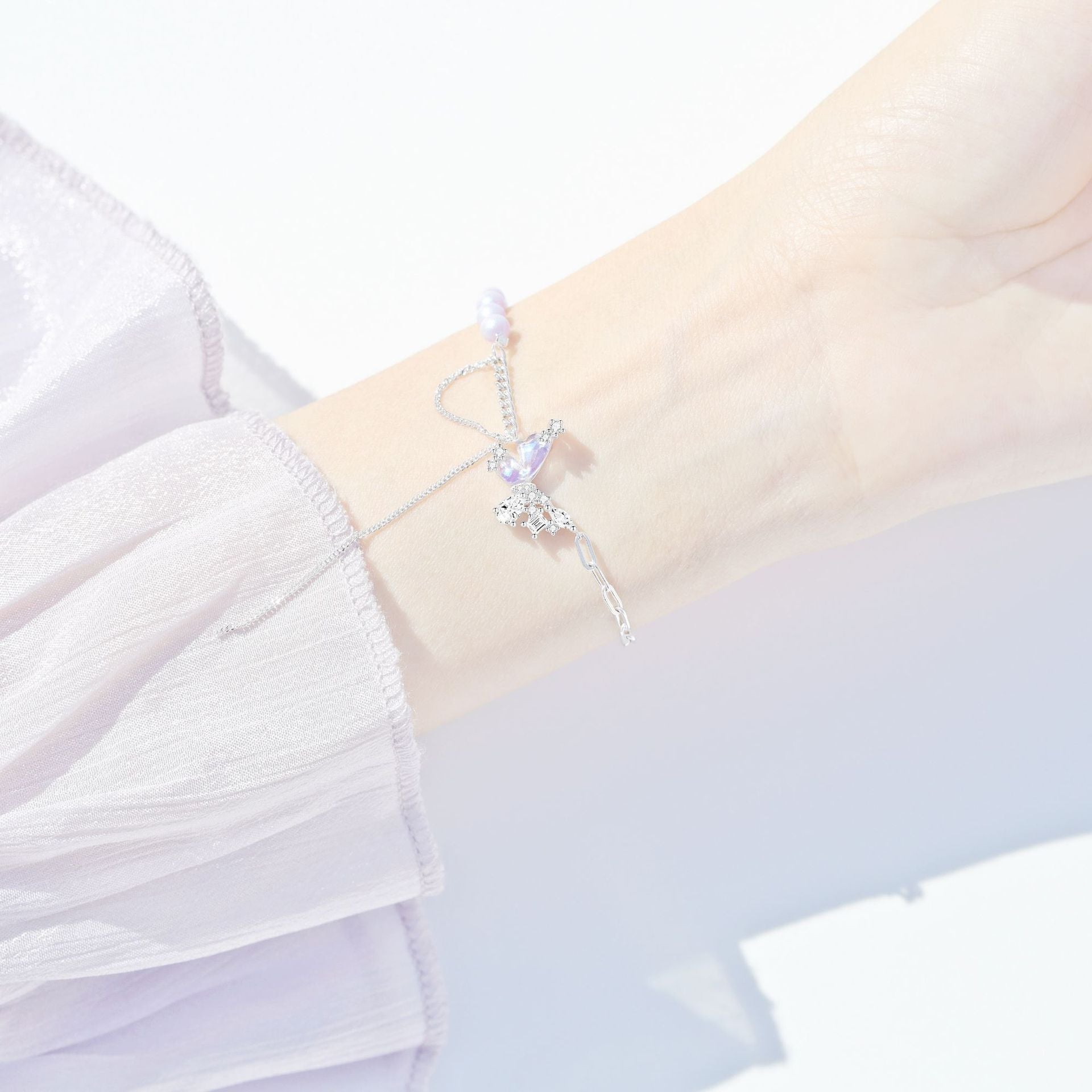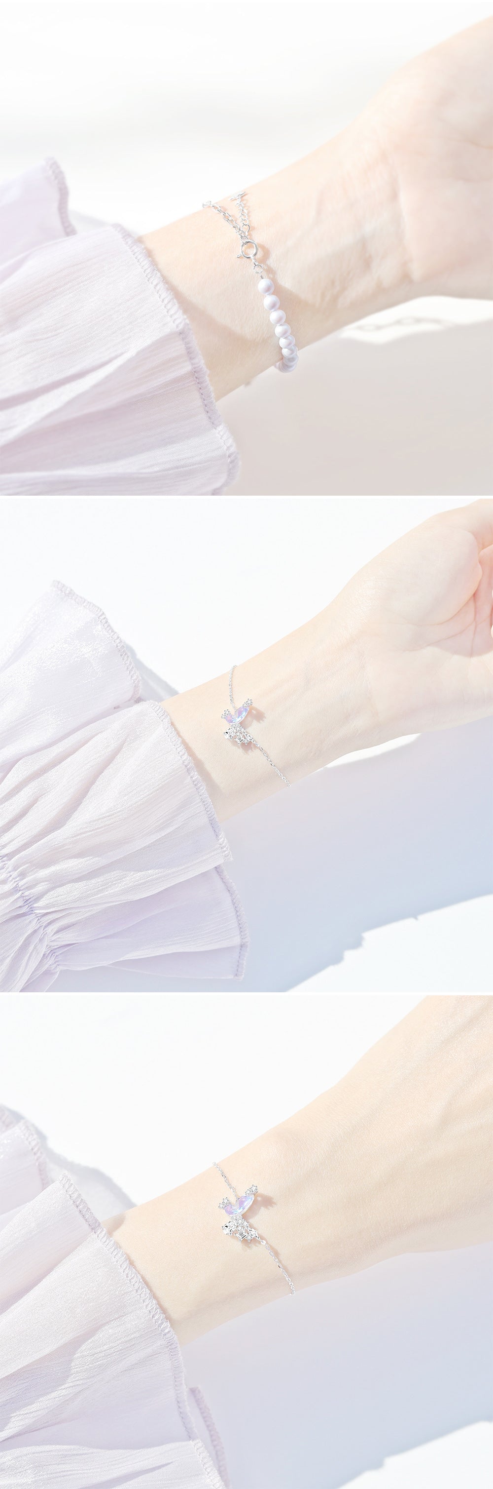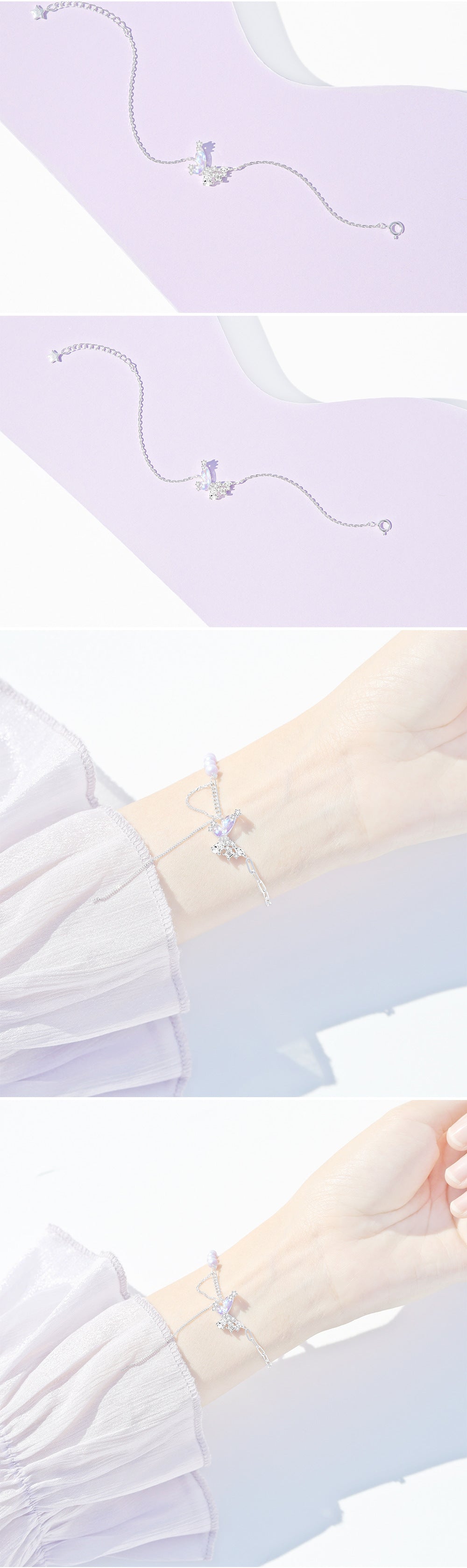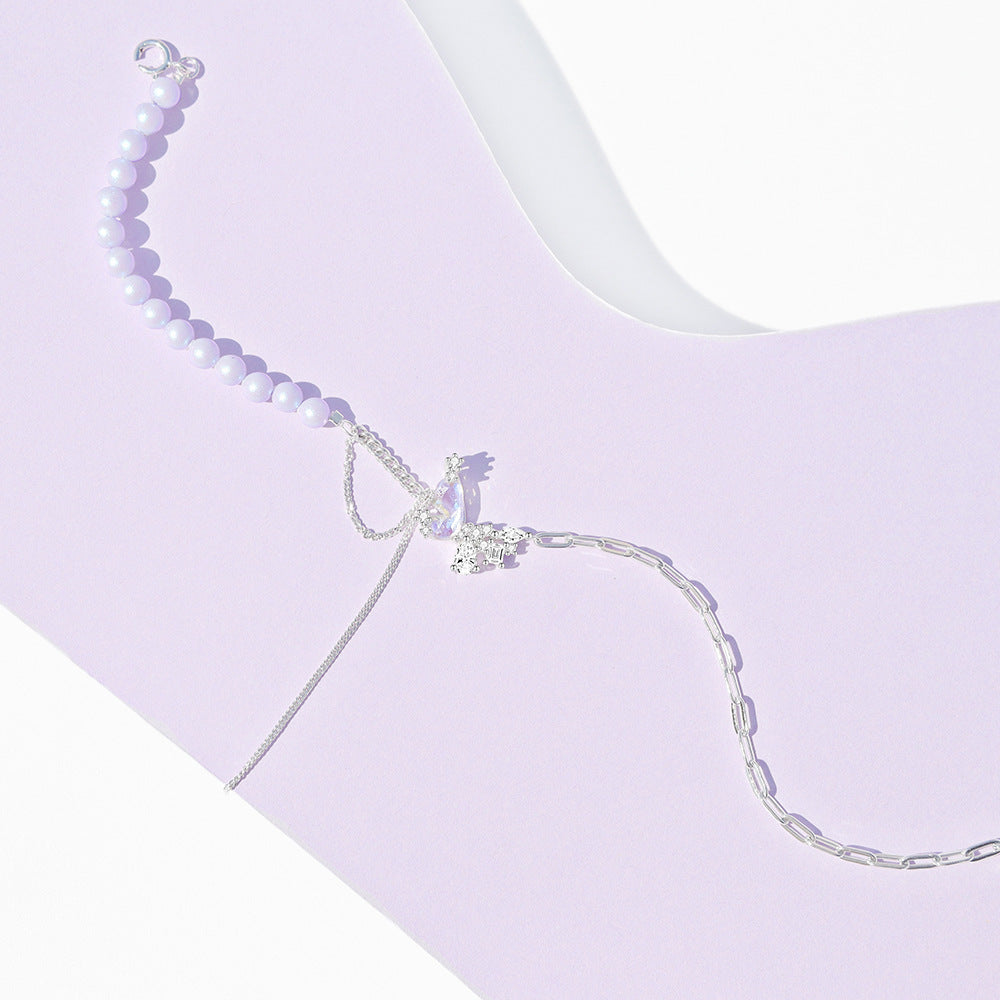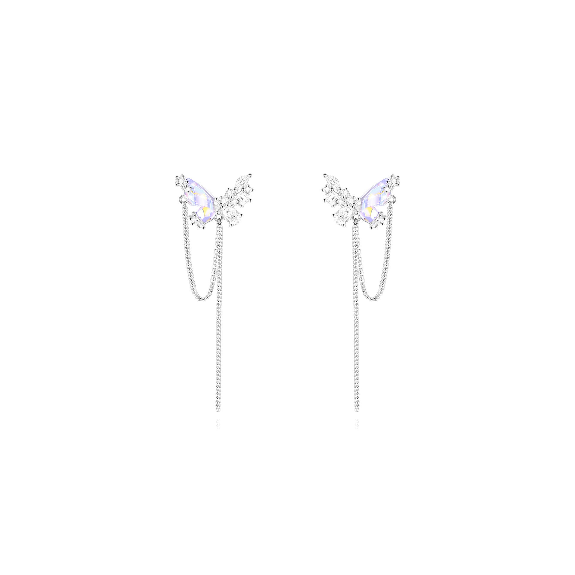 Original Design S925 Sterling Silver Pearl Stitching Aurora Small Butterfly Earrings