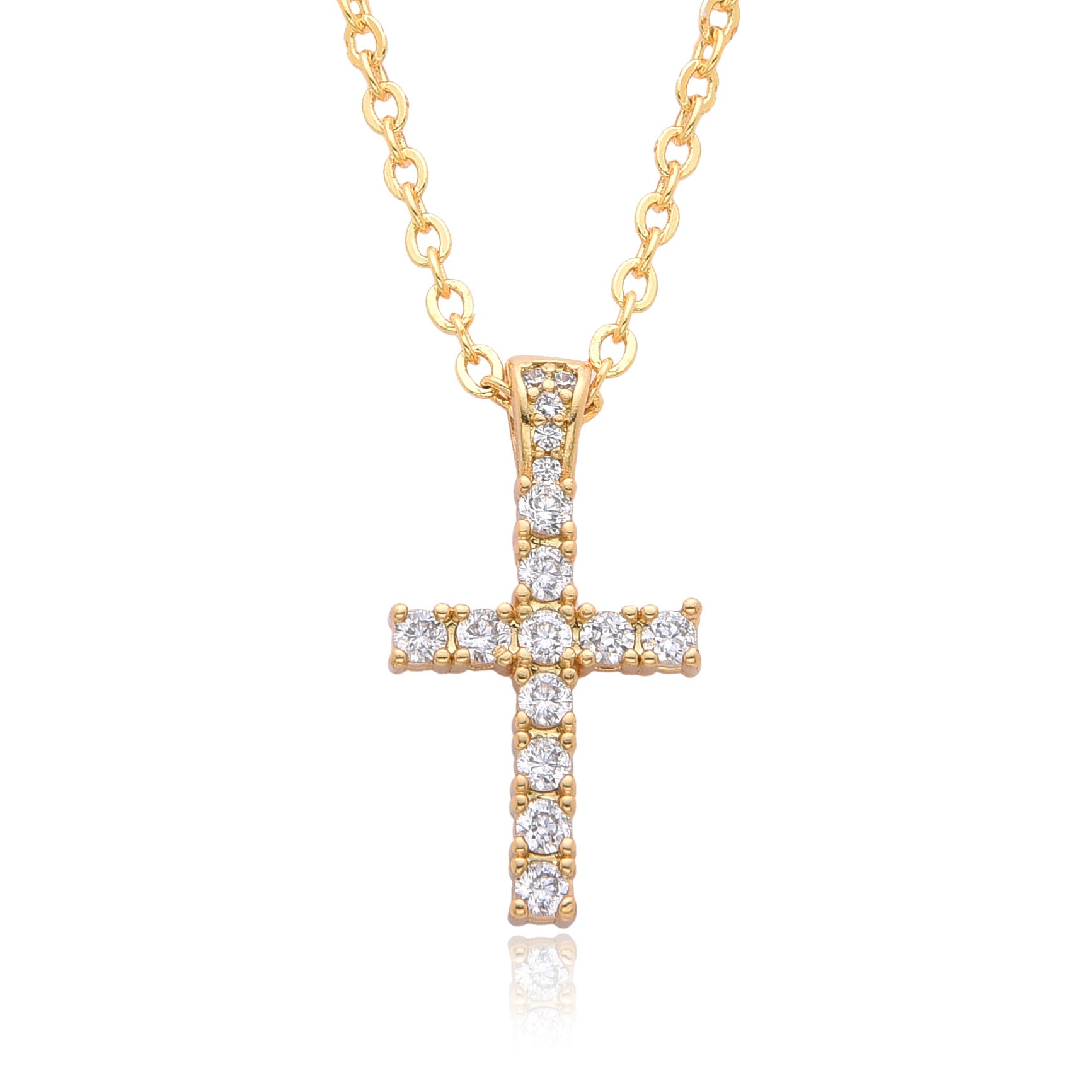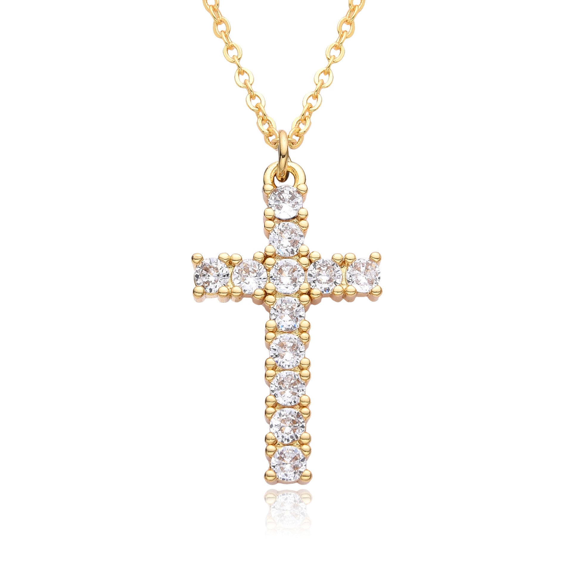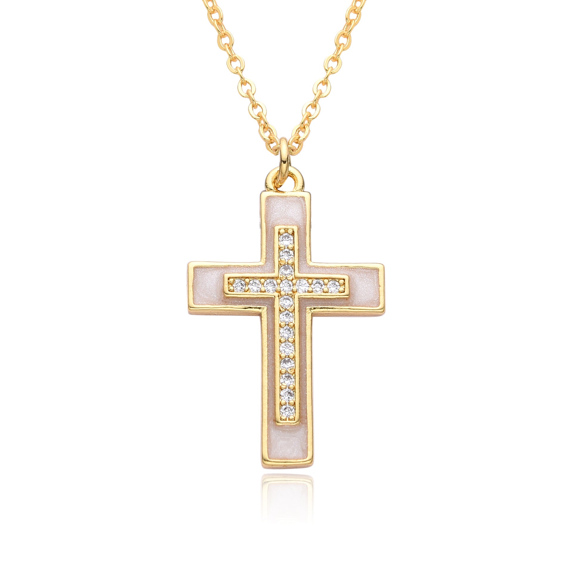 Ornament Copper Inlaid Zircon Cross Necklace Men And Women Fashion Gift Religious Cross Pendant