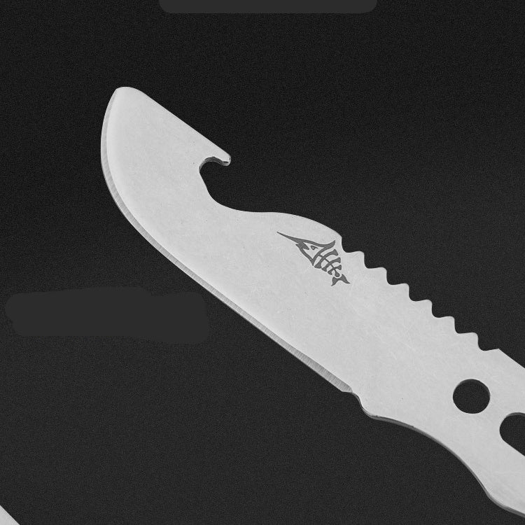 Functions: open fish belly, scrape fish scales, cut branches, rice spoon, whistle, open beer, make spearfish, etc.