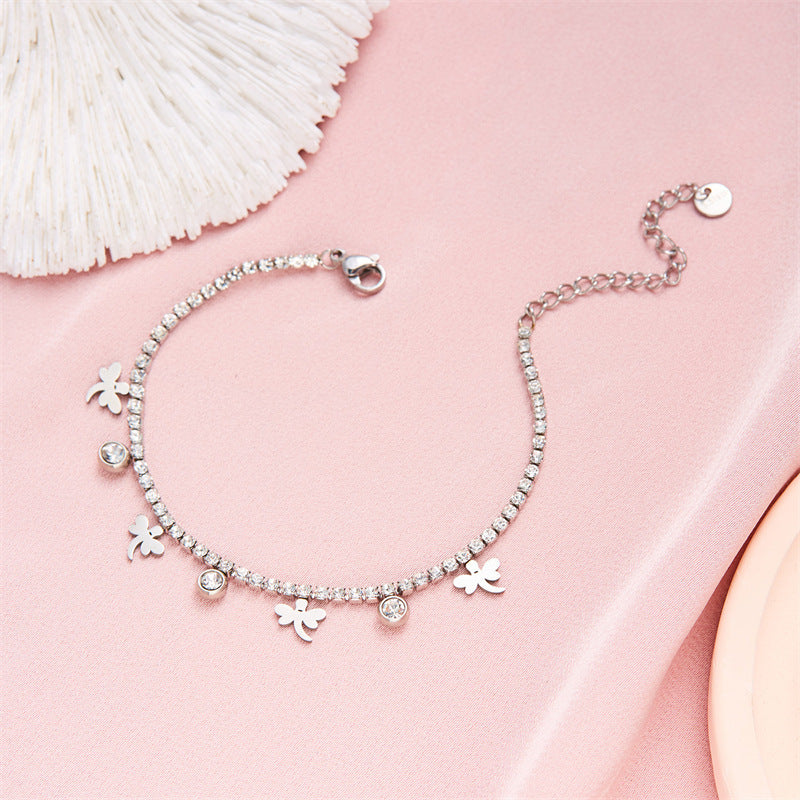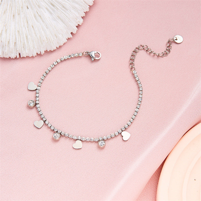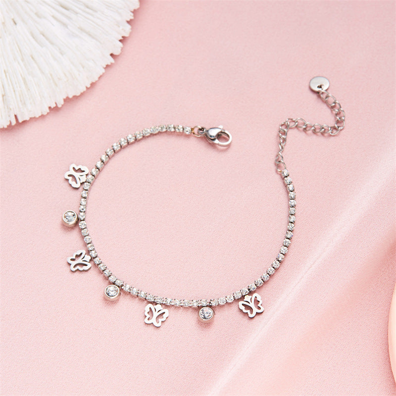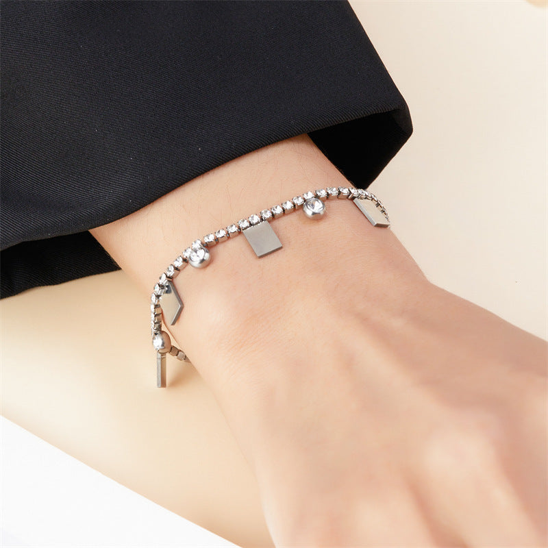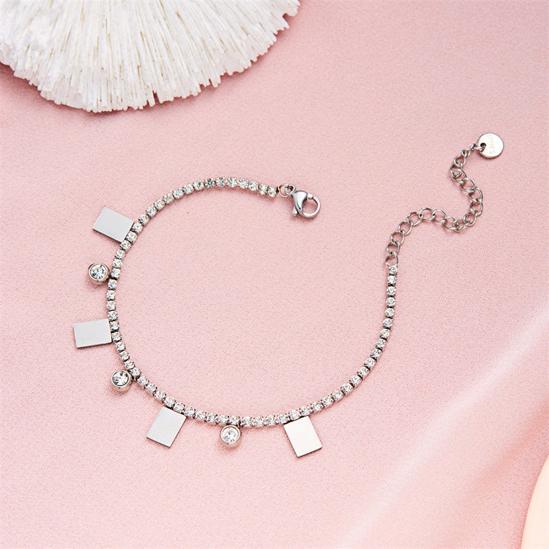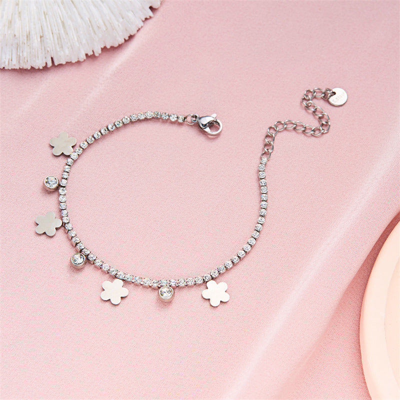 Rectangular Flower Inlaid Zircon Lobster Buckle Bracelet