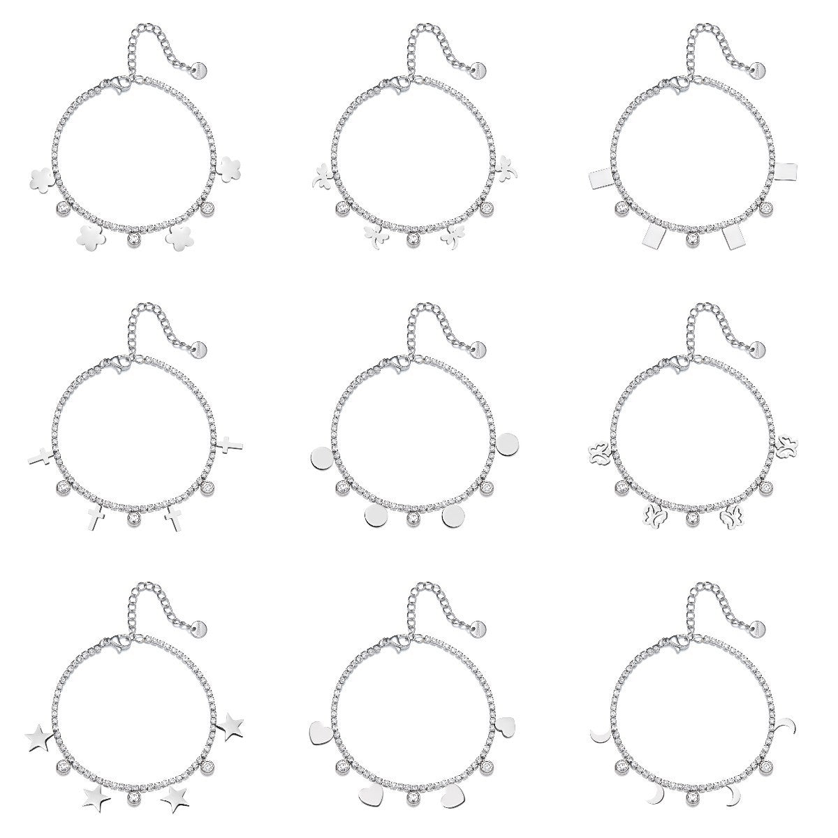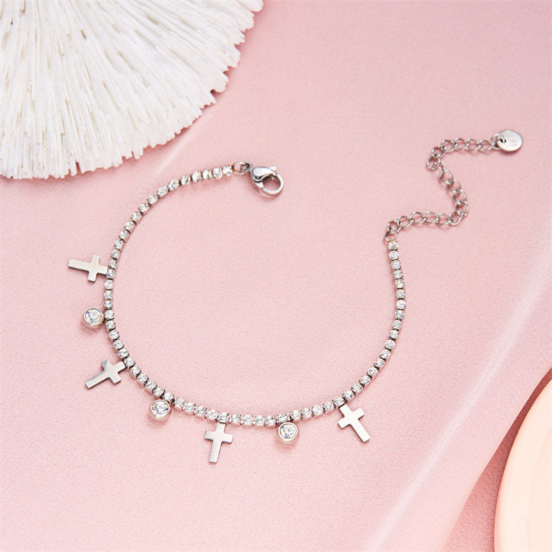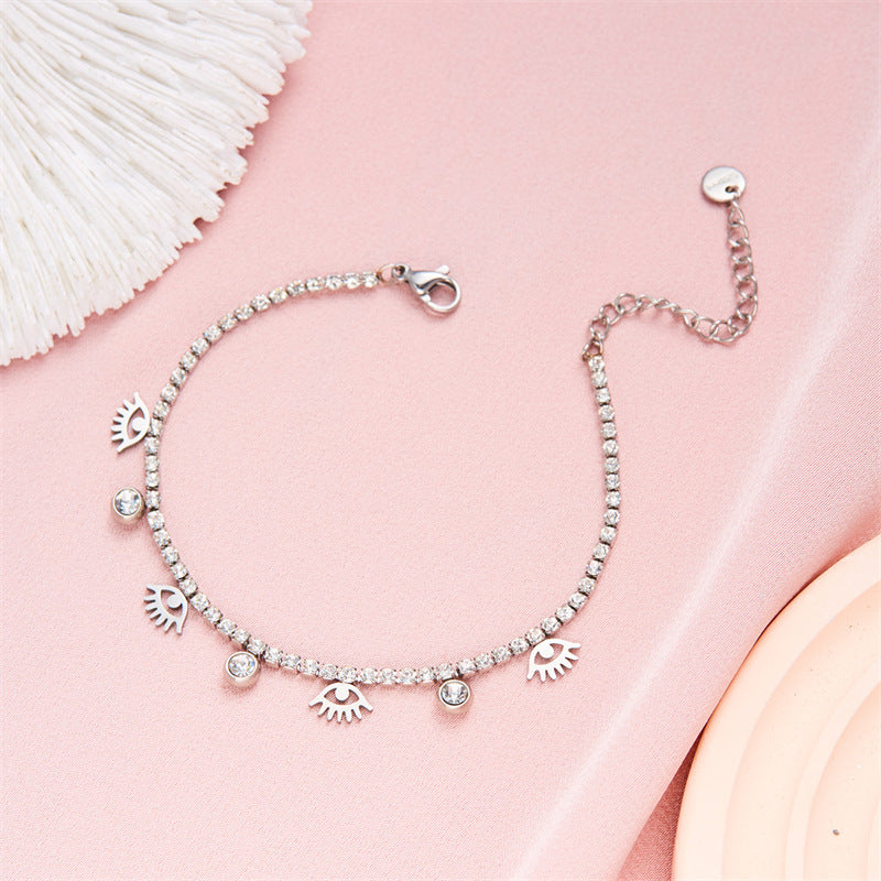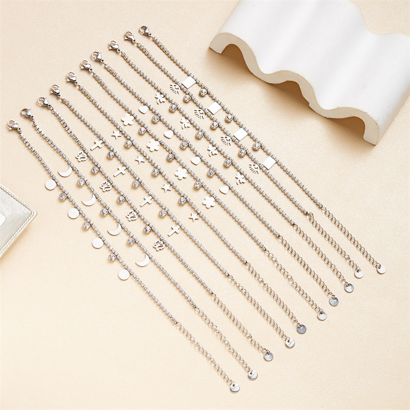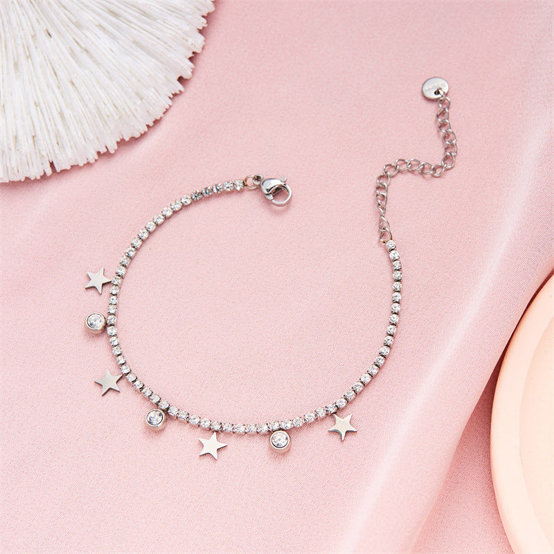 Rectangular Flower Inlaid Zircon Lobster Buckle Bracelet