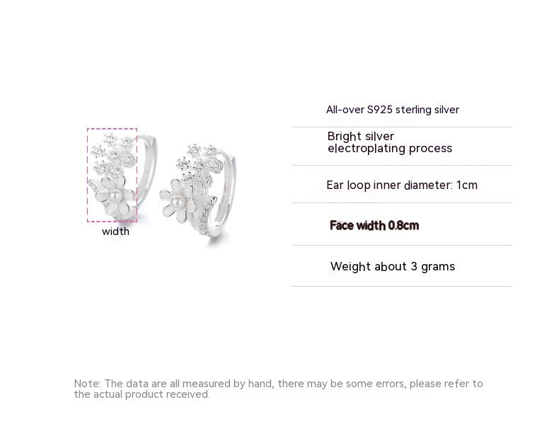 S925 Sterling Silver Artistic Pearl Stitching Snowflake Inlaid Zircon Trendy Earrings