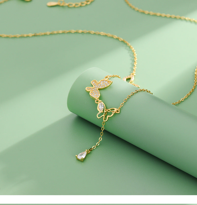 S925 Sterling Silver Diamond Tassel Butterfly Necklace