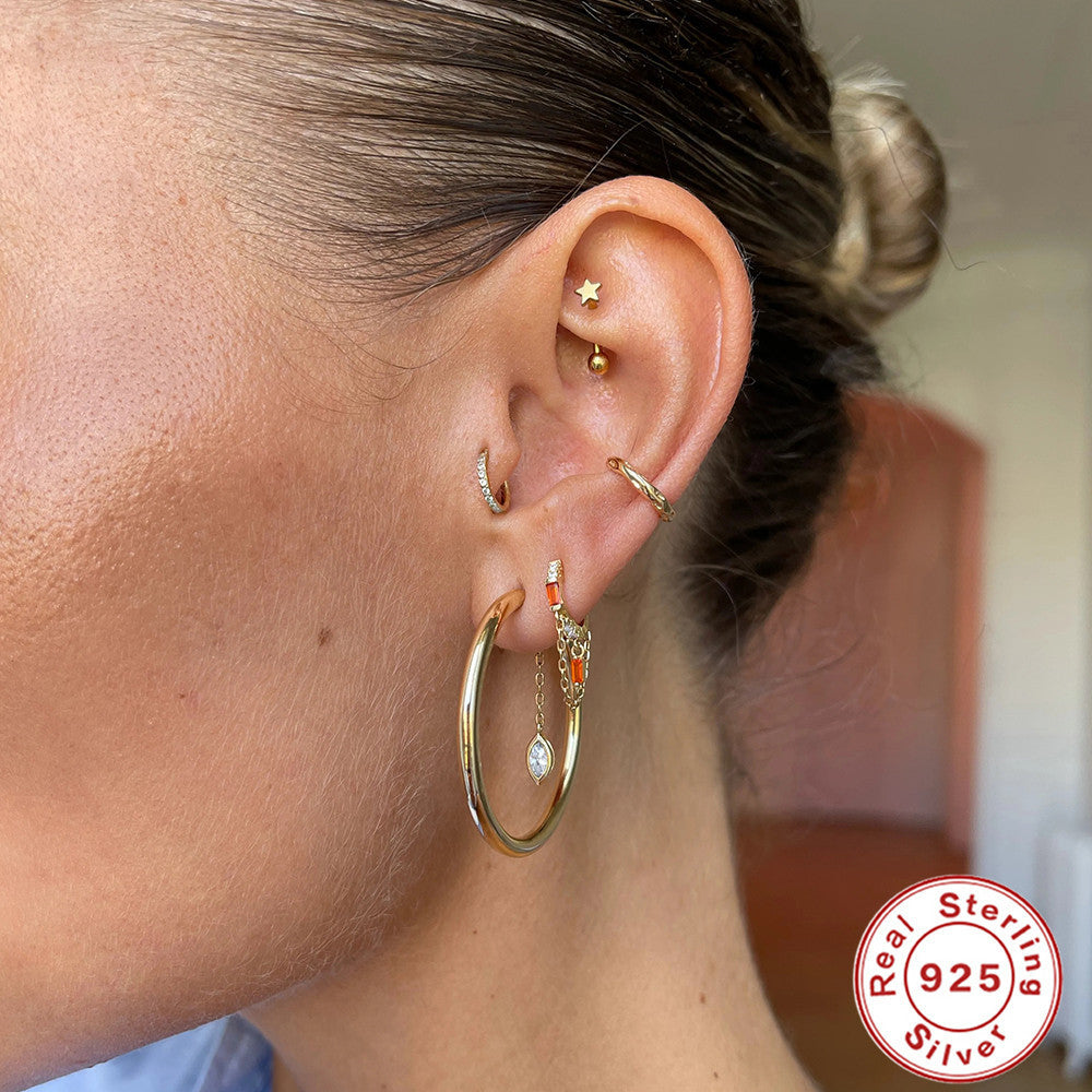 S925 Sterling Silver Ins Geometric Tassel Chain Square Zircon Earrings