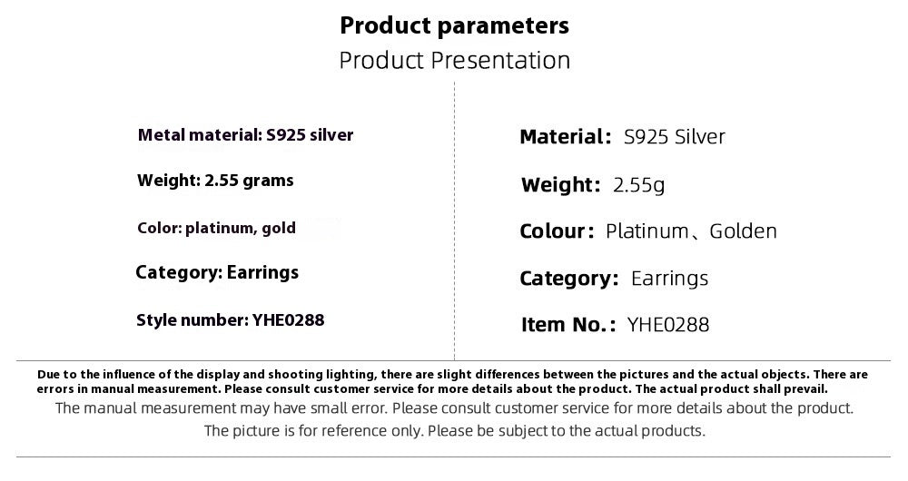 Color: White Gold (one pair price), yellow gold (one pair price)