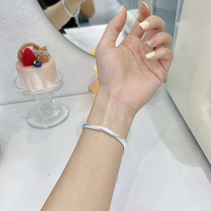 S925 Sterling Silver Korean Style Heavy-duty Texture Flat Snake Wide Chain