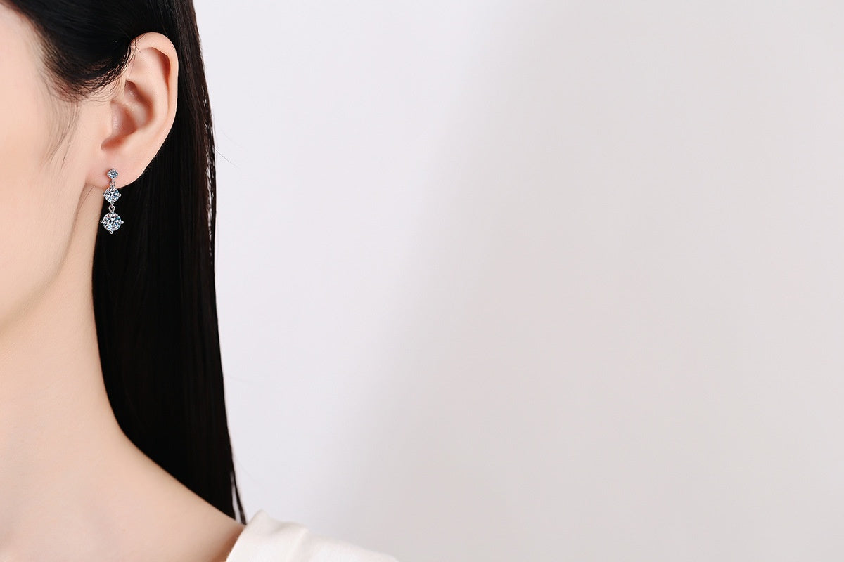 S925 Sterling Silver Stud Earrings Moissanite Tassel