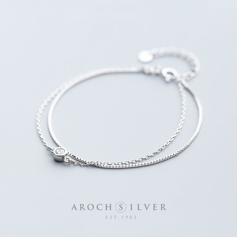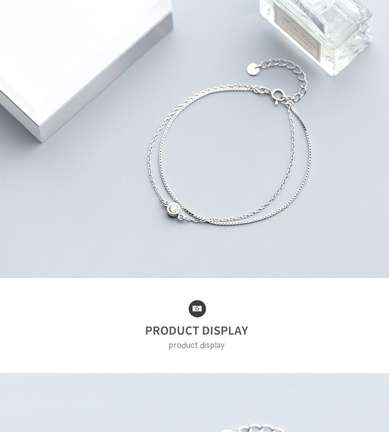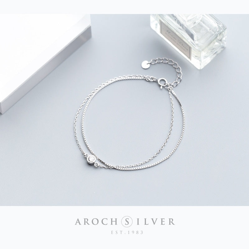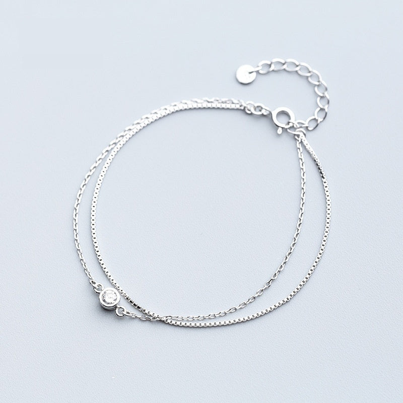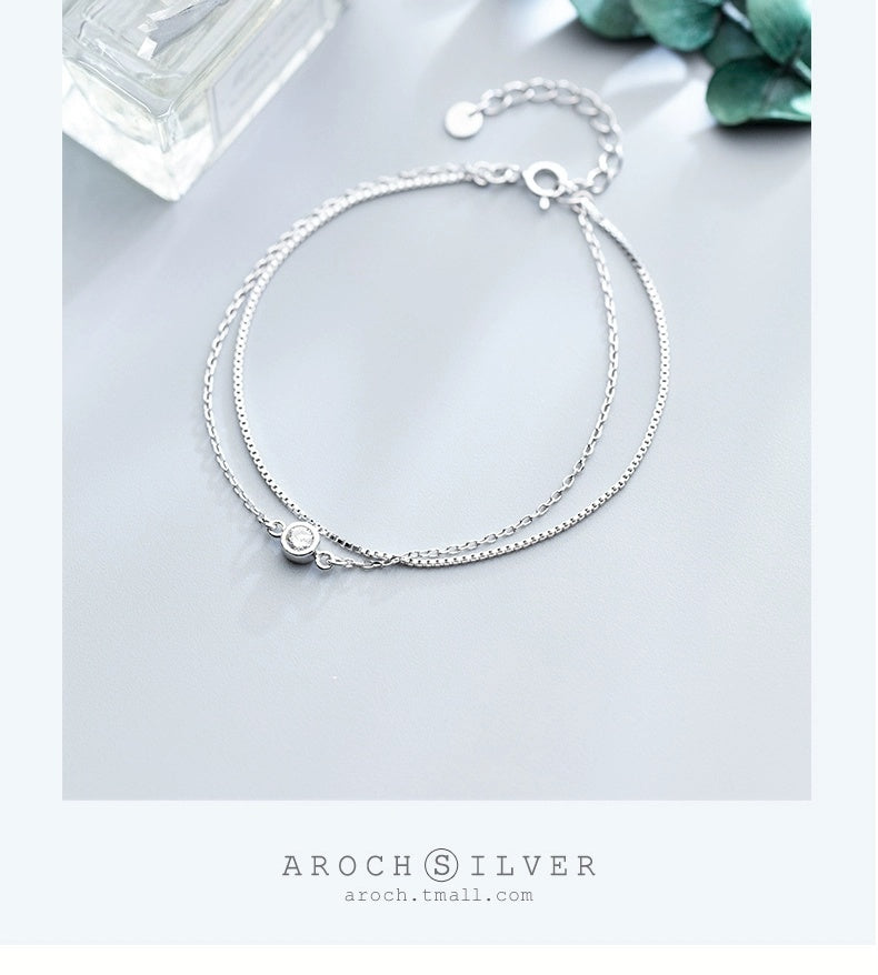 Silver Bracelet Women's Single Diamond Double-layer Fashion Bracelet