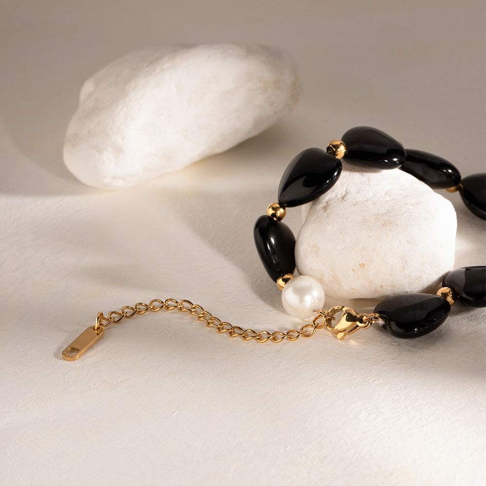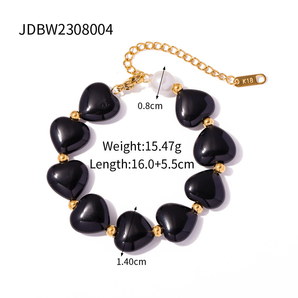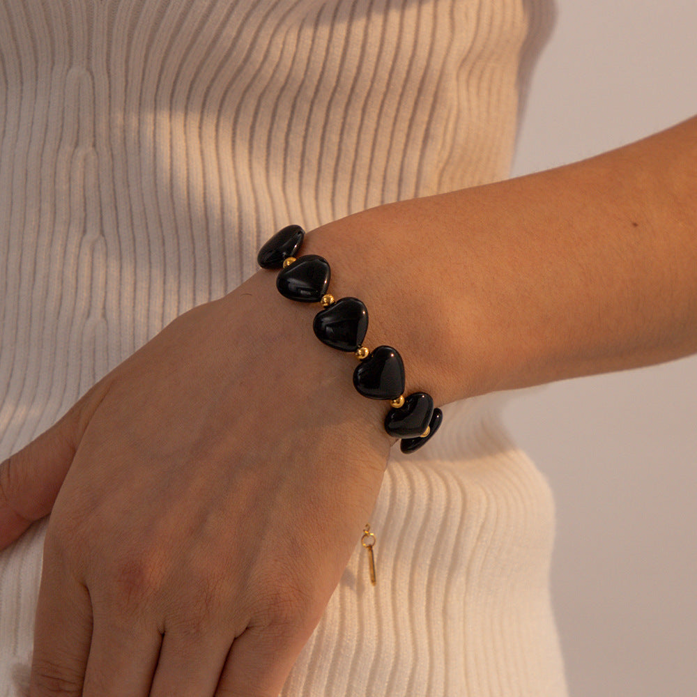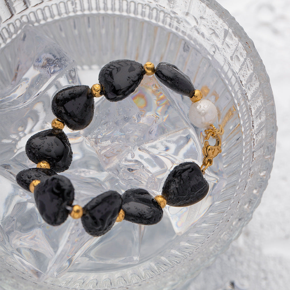 Special Interest Light Luxury Black Agate Love Heart Beaded Bracelet