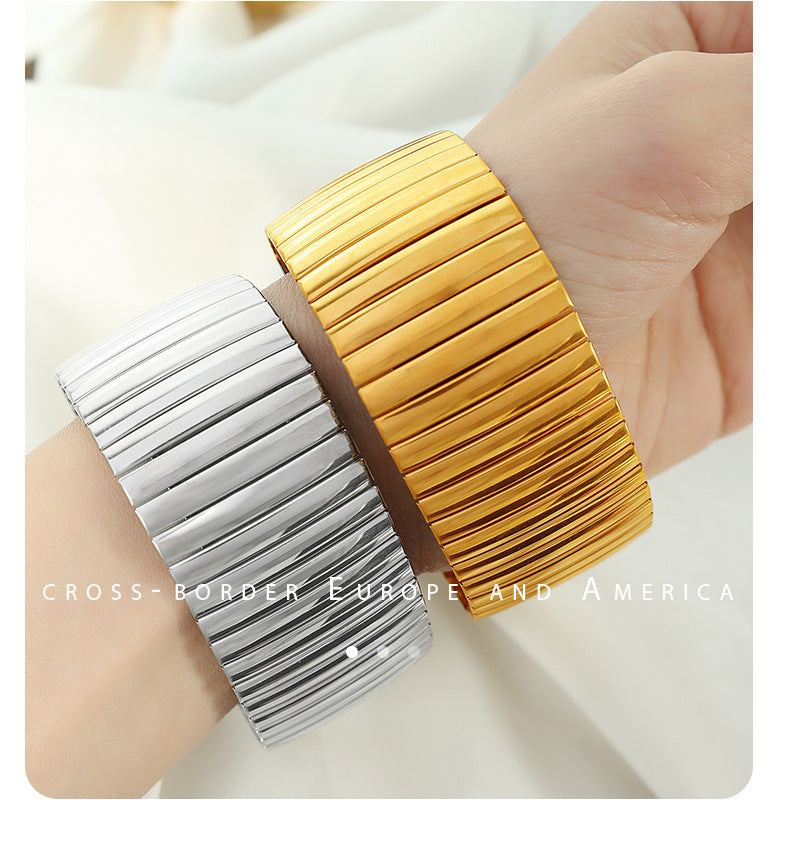 Color: SZ56 gold stretch Plaid wide bracelet, SZ56 silver stretch Plaid wide bracelet, SZ57 gold stretch vertical stripes wide bracelet, SZ57 silver stretch vertical stripes wide bracelet