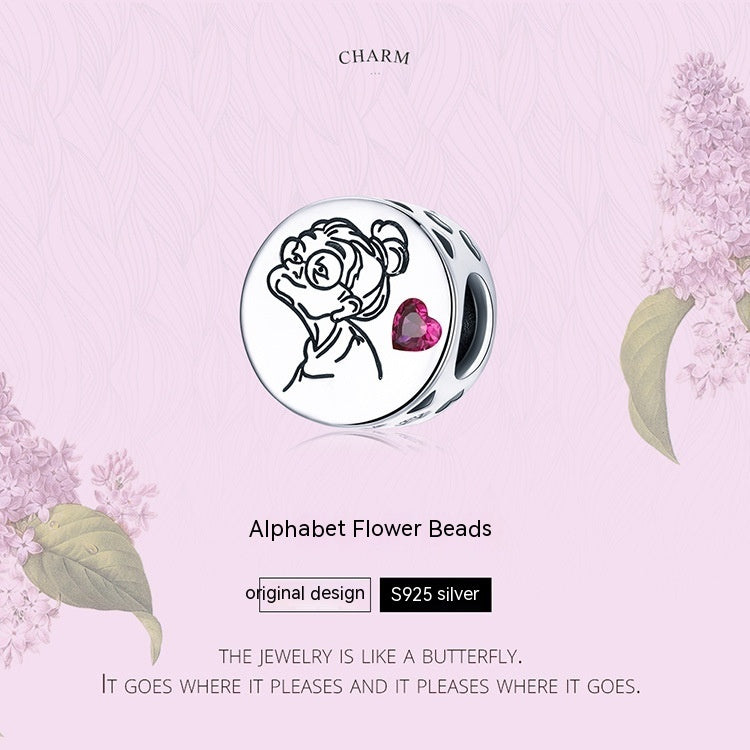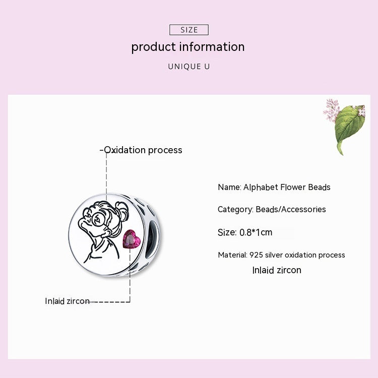 Sterling Silver Letters Flower Bracelet Accessories Simple Zircon Beads