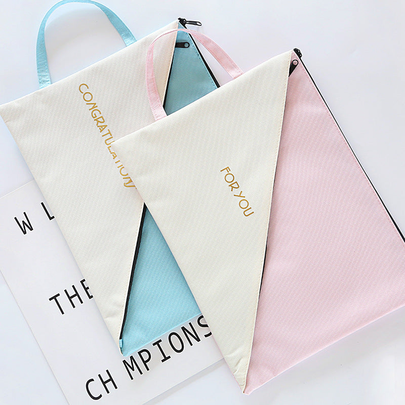 Student Double-layer Creative Test Paper Storage Bag Zipper Handbag Canvas Waterproof Information Bag