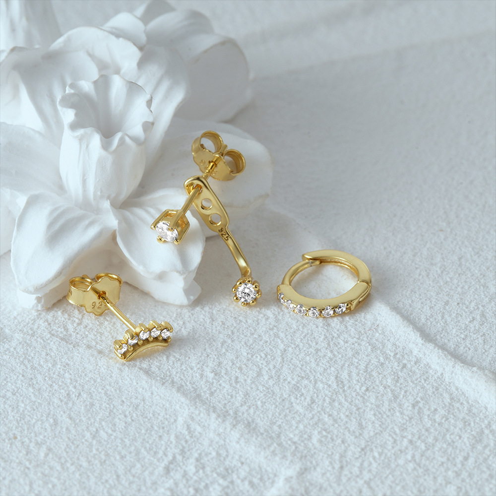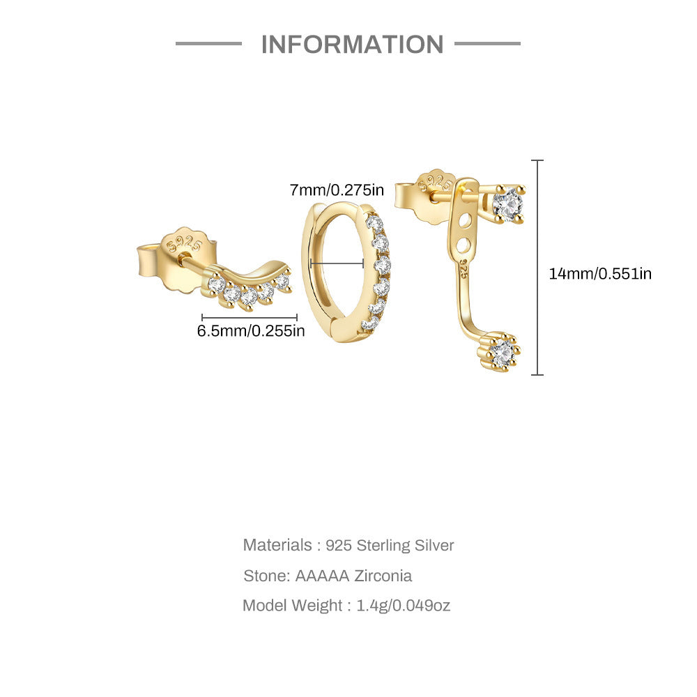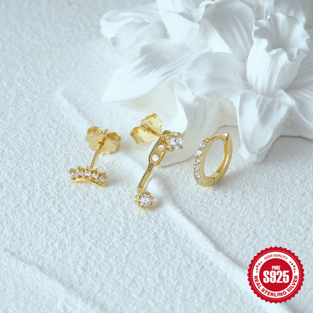 Temperament Matching Zircon Three-piece Set 925 Silver Earrings