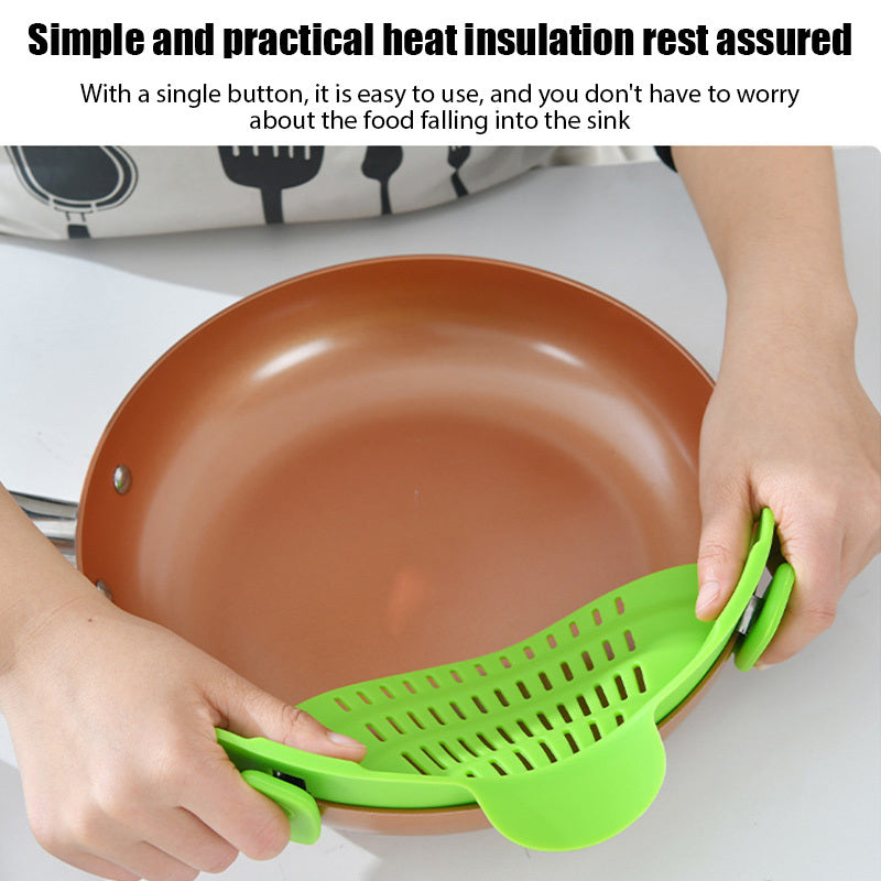 【DURABLE & HEAT-RESISTANT】: strainer is made from 100% premium food grade silicone. BPA-free and non-toxic. Heat-resistant silicone can withstand high temperatures. Save space on your countertop with this hassle-free clip-on strainer.